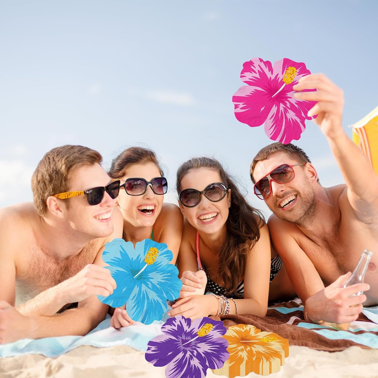 Tropical Napkins,Hawaiian Tropical Decoration 40pcs Luau Napkins Paper Floral Hibiscus Hawaiian Napkins For Summer Luau Party Supplies