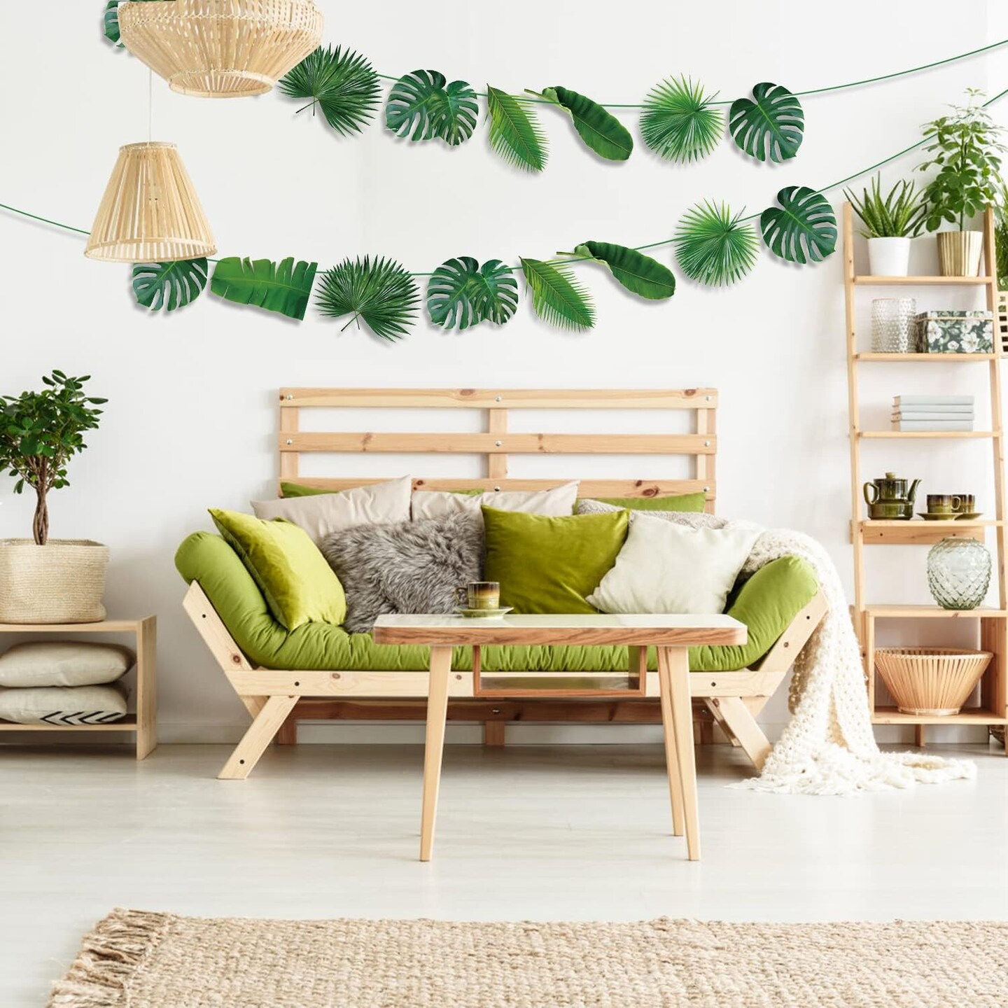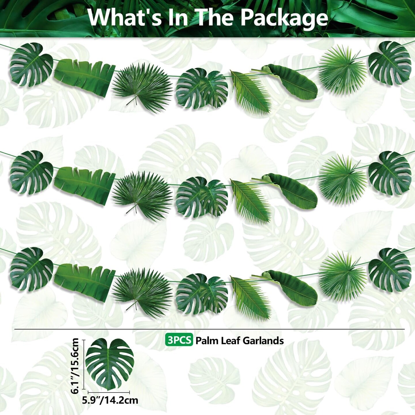Tropical Party Decorations - 3 Pcs Tropical Leaves Banners, Green Artificial Palm Leaves Garland, Jungle Party Decorations Palm Leaves for Hawaiian Luau Party Supplies