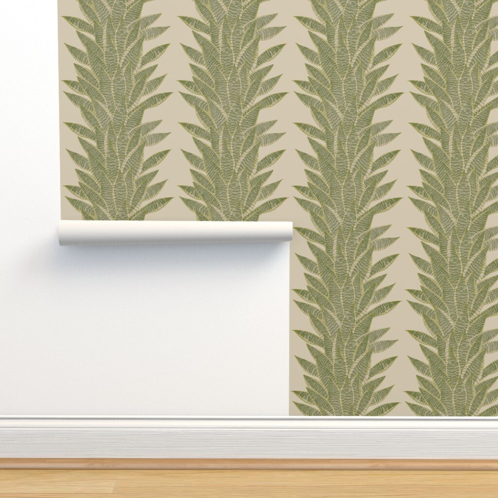 Tropical Stripe Olive Green Succulent Neutral Greenery Custom Removable Wallpaper by Spoonflower Peel & Stick Wallpaper 2FT Wide