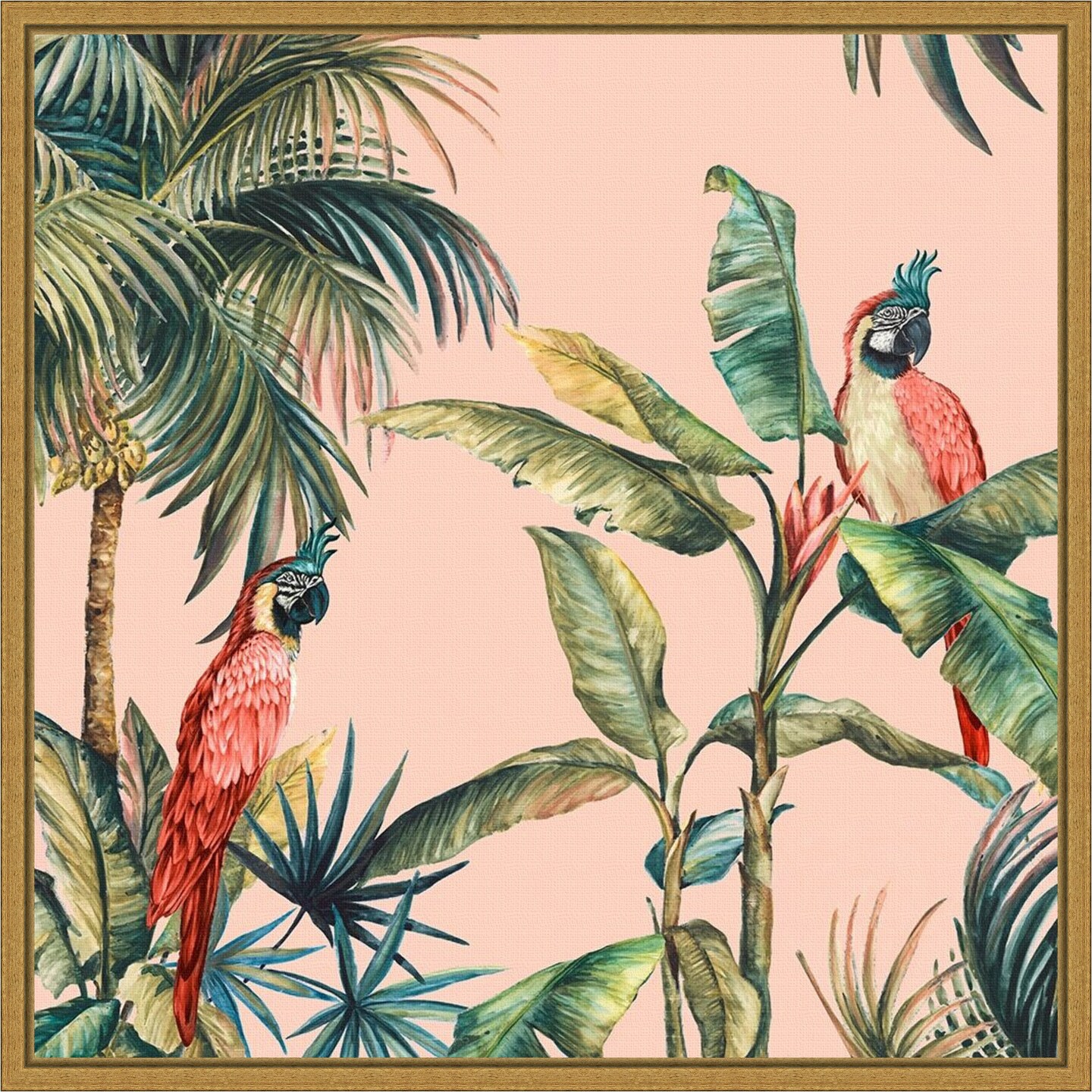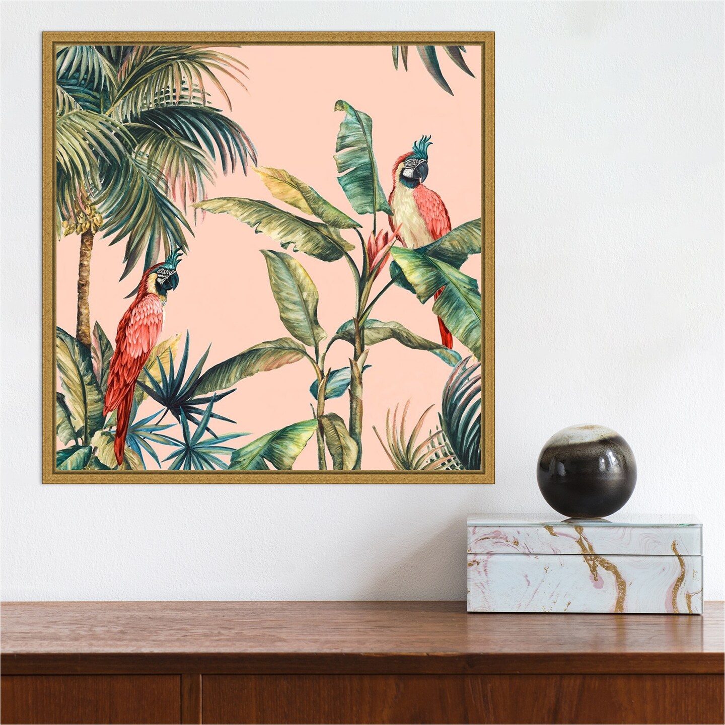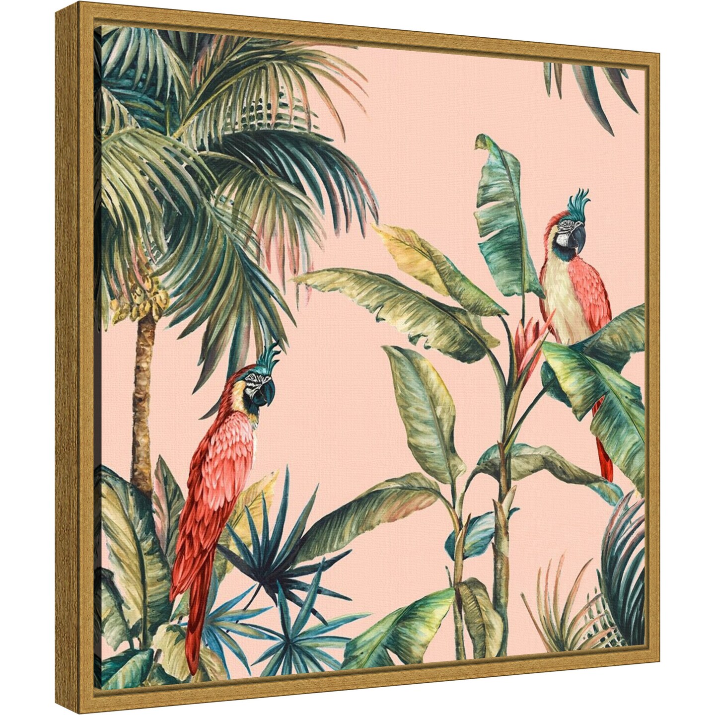 Tropicano II (Parrot in Palm) by Eva Watts 16-in. W x 16-in. H. Canvas Wall Art Print Framed in Gold