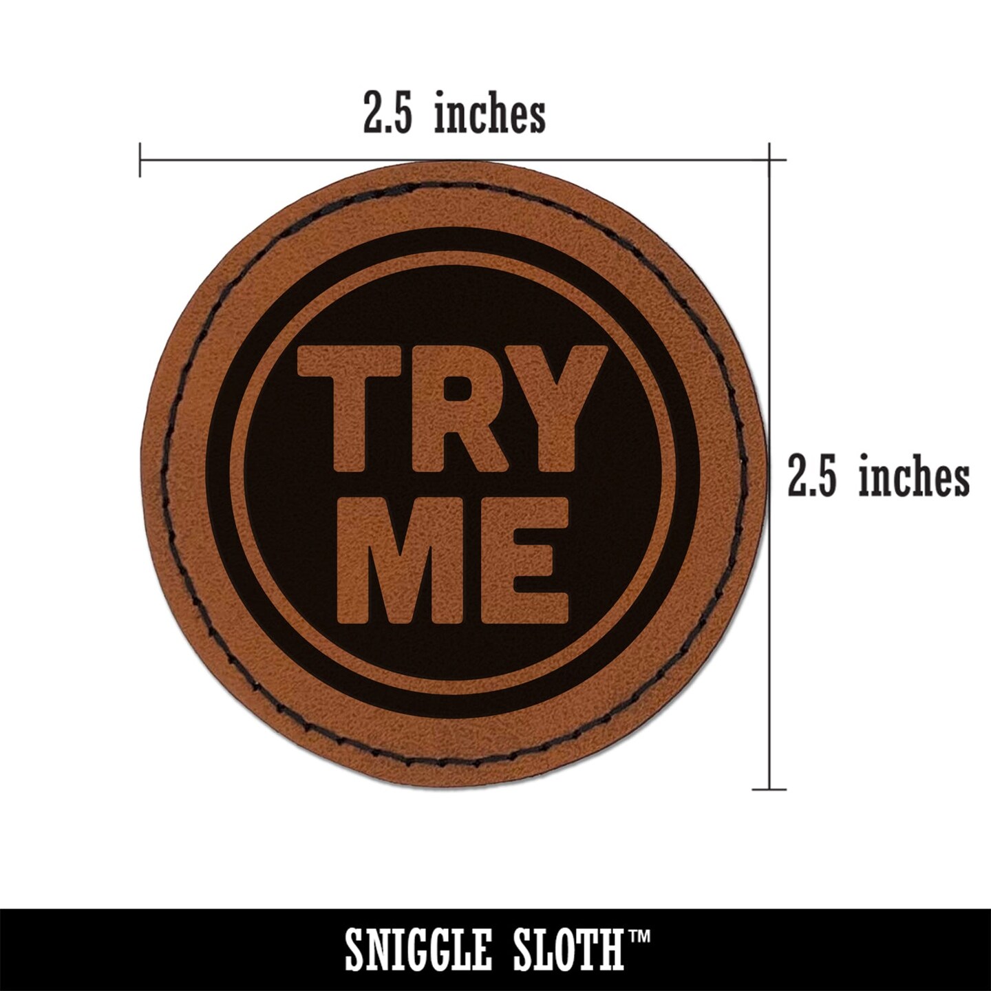 Try Me Sample Round Iron-On Engraved Faux Leather Patch Applique - 2.5"