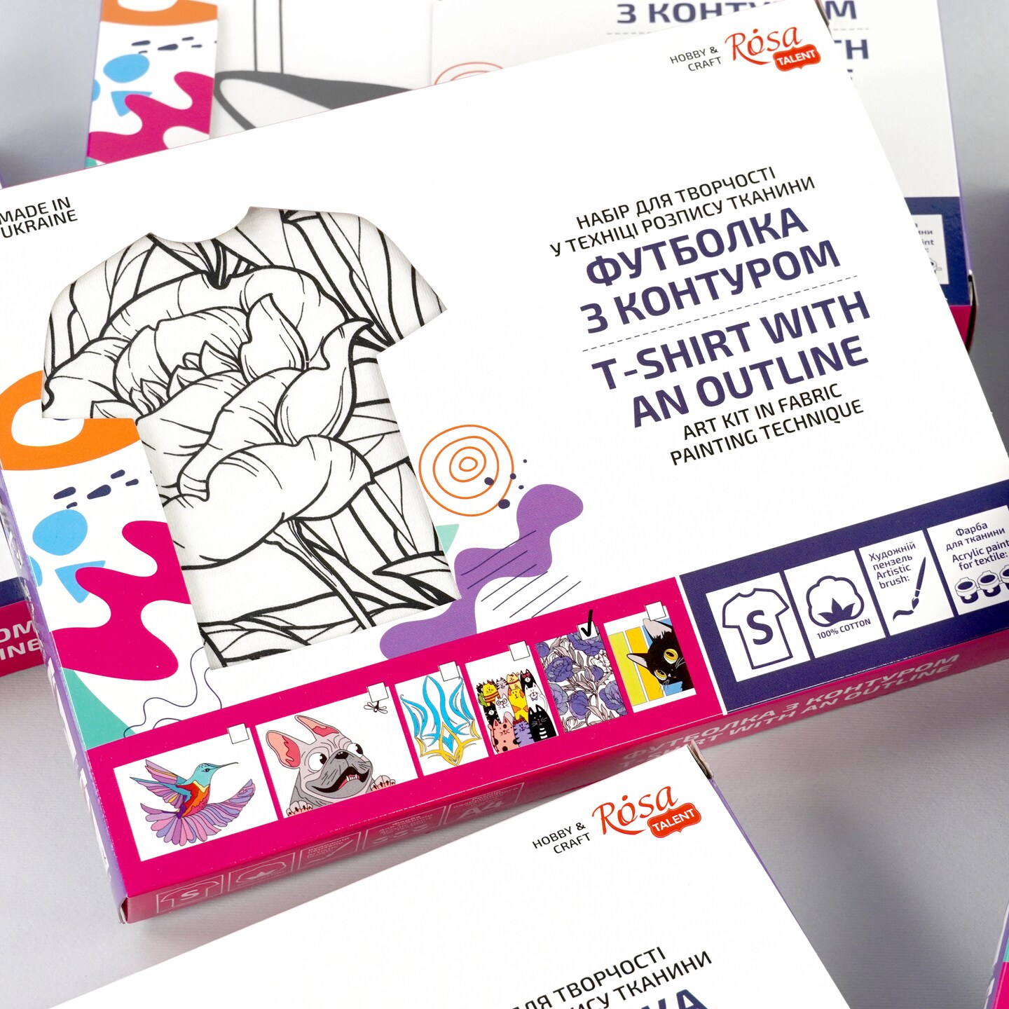 T-Shirt Painting "Blue Peonies" - 100% Cotton, Size S by ROSA Talent