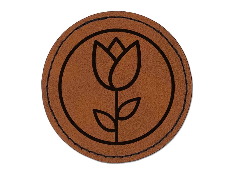 Tulip Flower in Circle Round Iron-On Engraved Faux Leather Patch Applique - 2.5"