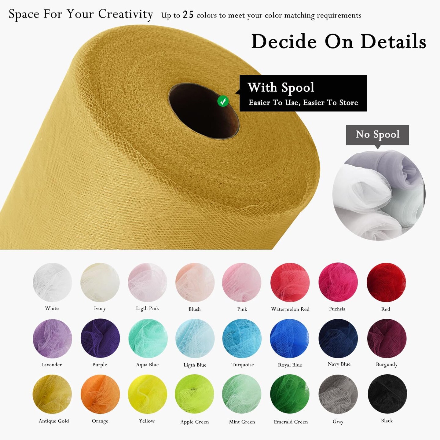 Tulle Fabric Rolls 54 Inch by 40 Yards Tulle Bolt Spool for Wedding Christmas Decorations DIY Tutu Baby Shower Table Skirt Ceiling Decor Birthday Party Craft Supplies (Antique Gold)