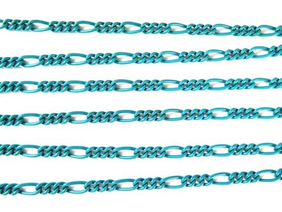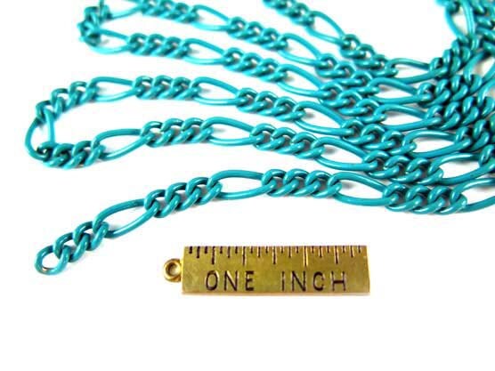 Turquoise Blue Enamel Figaro Curb Chain (3') (C917)