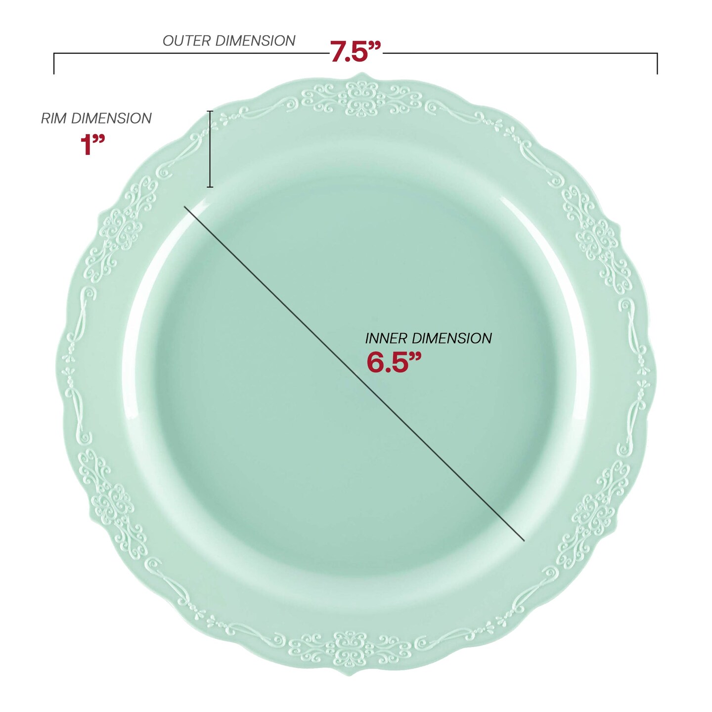 Turquoise Vintage Round Disposable Plastic Appetizer/Salad Plates - 7.5" (120 Plates)