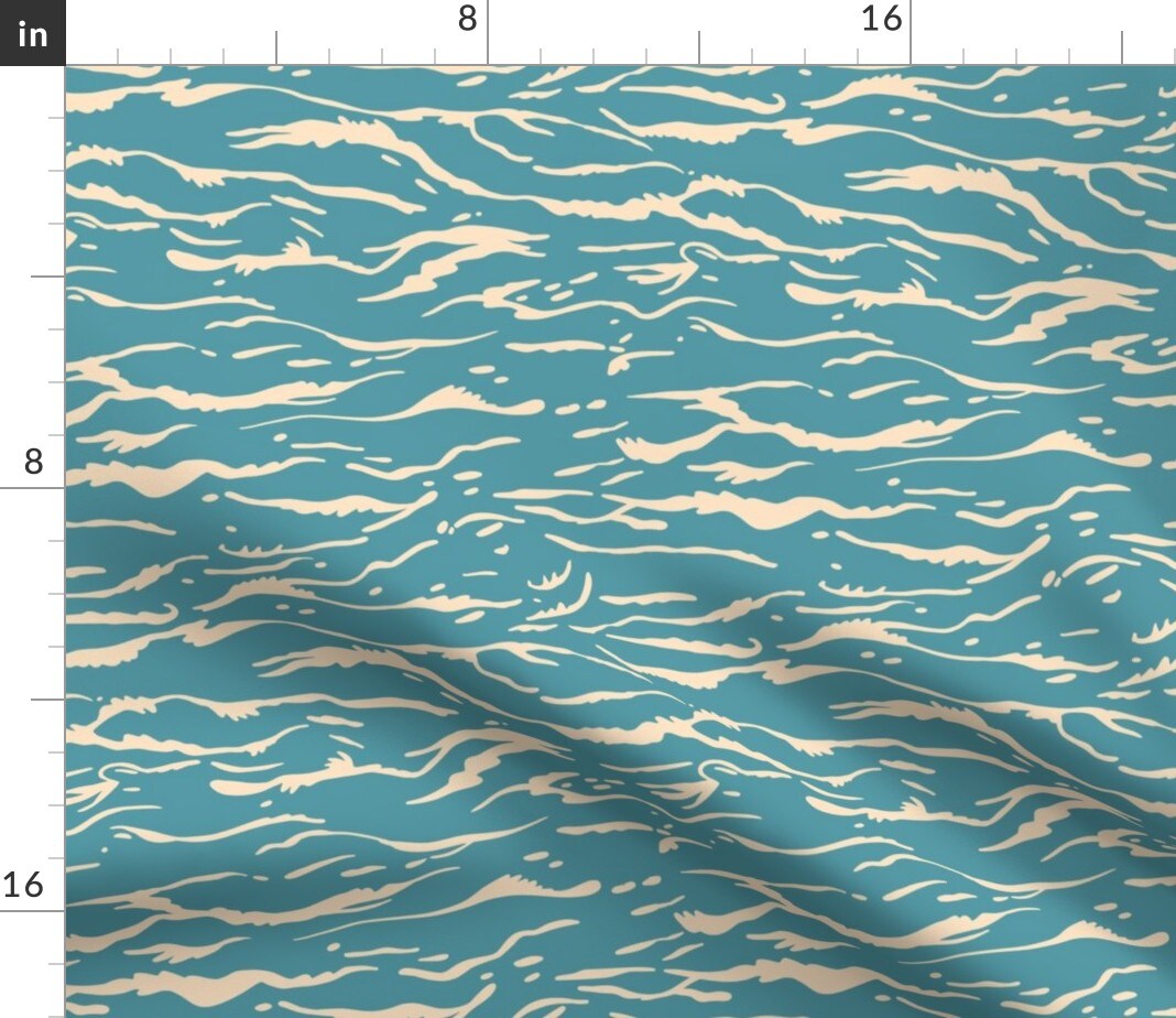 Turquoise Waves Teal Blue Coastal Beach Water Tropical Summer Vacation Custom Printed Fabric by Spoonflower Various Fabrics by the Yard or Fat Quarter