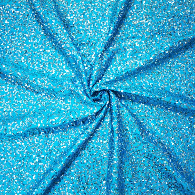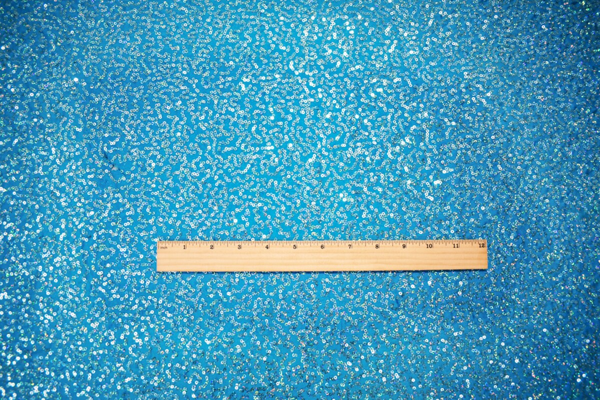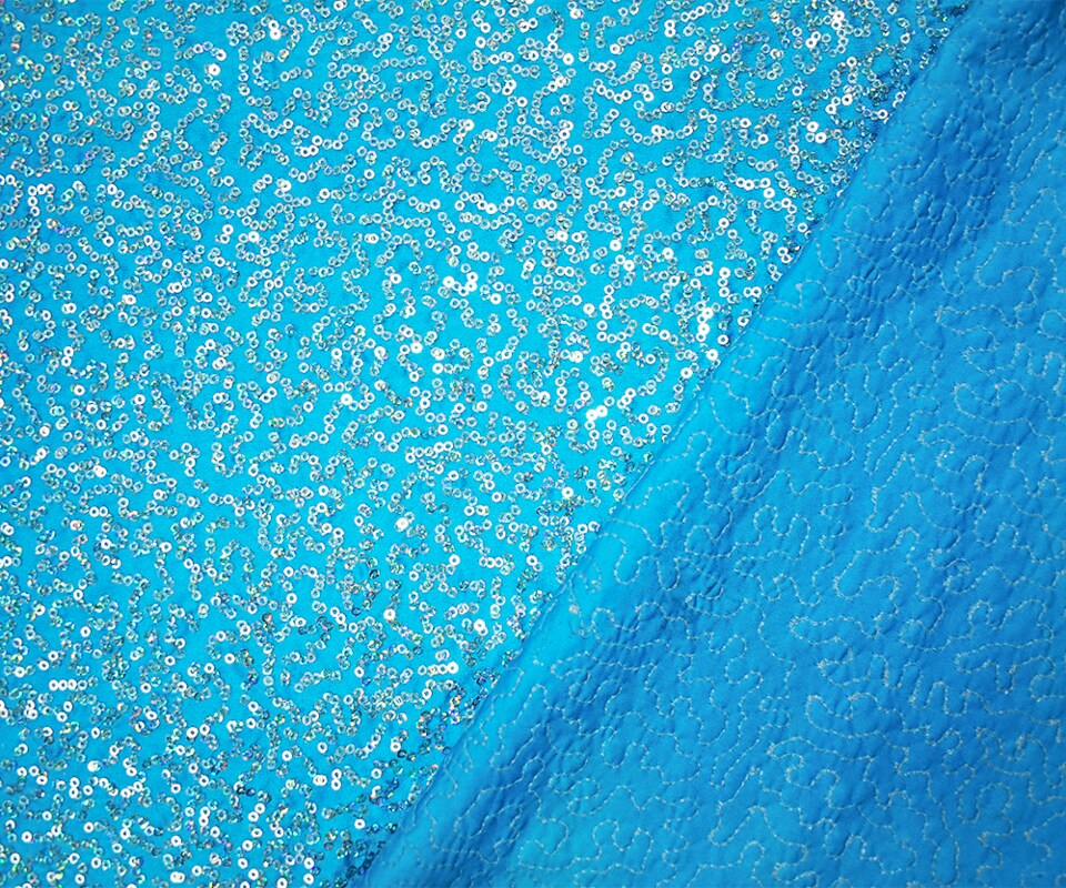 Turquoise-Blue Coral Sequin Pattern Stretch Spandex Knit Fabric By the Yard
