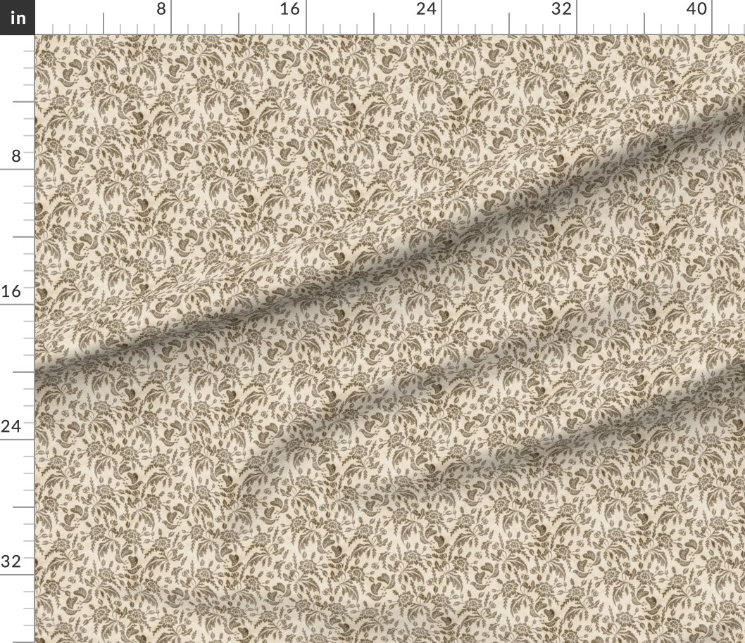 Turtle Doves Neutral Block Print Floral Beige.Brown Rustic Botanical Boho Japandi Custom Printed Fabric by Spoonflower Various Fabrics by the Yard or Fat Quarter