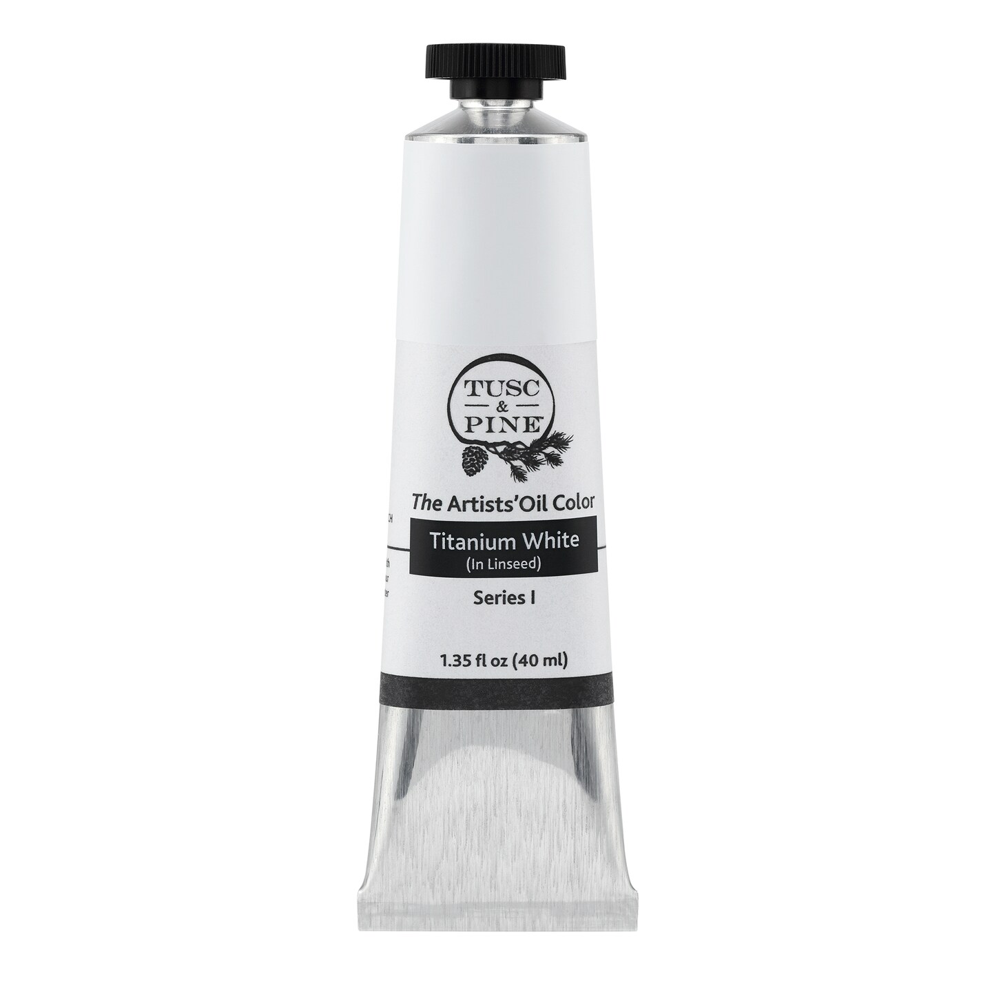 Tusc & Pine Artist Oil Paint - Titanium White (In Linseed), 40ml, Non-Yellowing, Rich & Creamy Consistency, Maximum Pigment Load, Small Batch Milled Oil Paints Made in the USA for Professional Artists