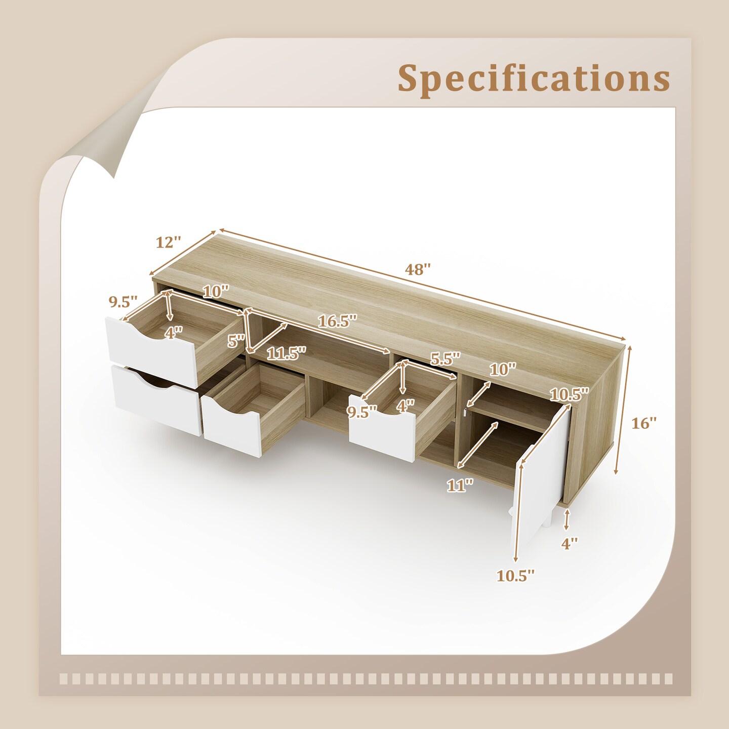 TV Stand for 55 Inch TV Media Console 4 Drawer Cabinet with Adjustable Shelf Oak