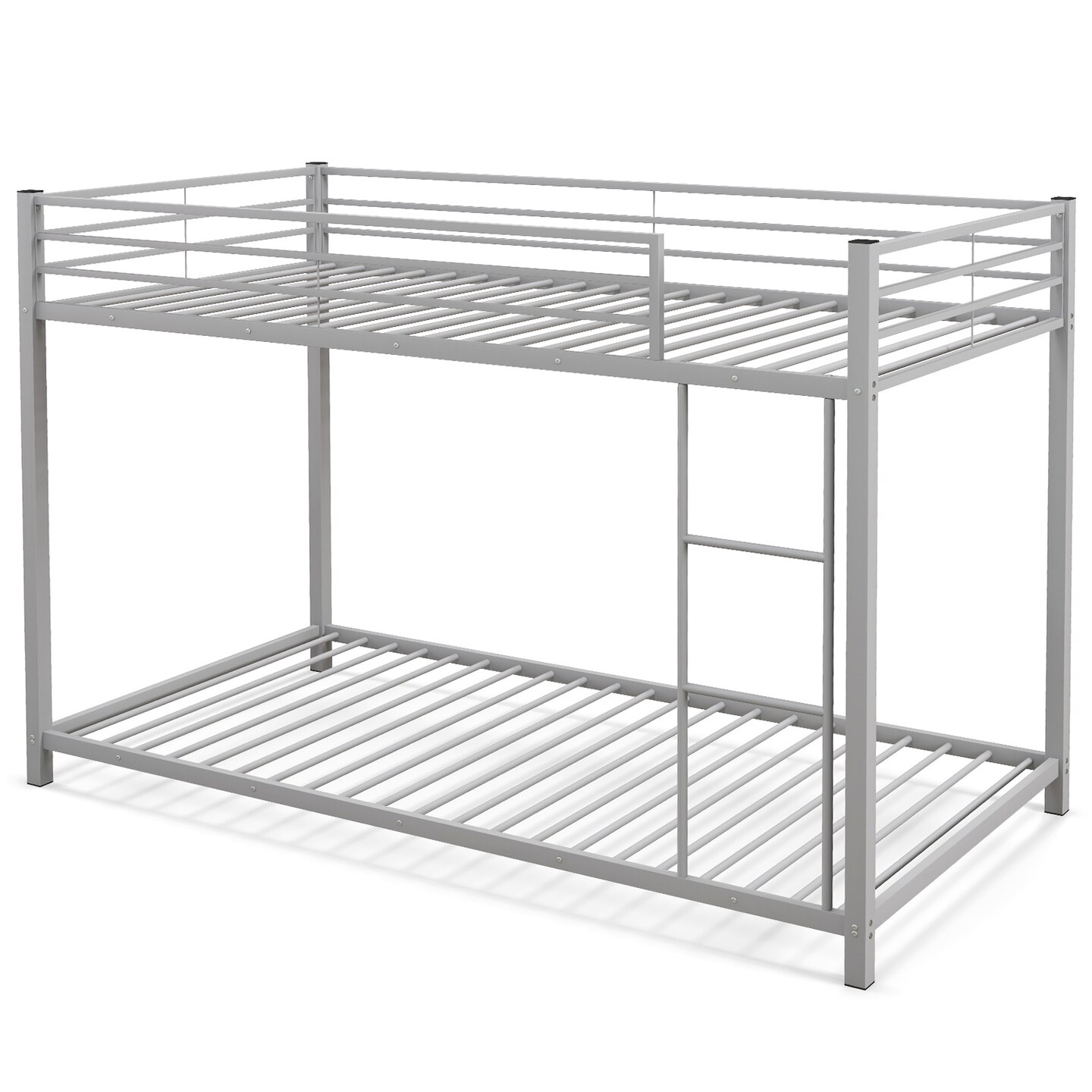 Twin Over Twin Metal Bunk Bed, Low Profile, Safe, No Box-Spring