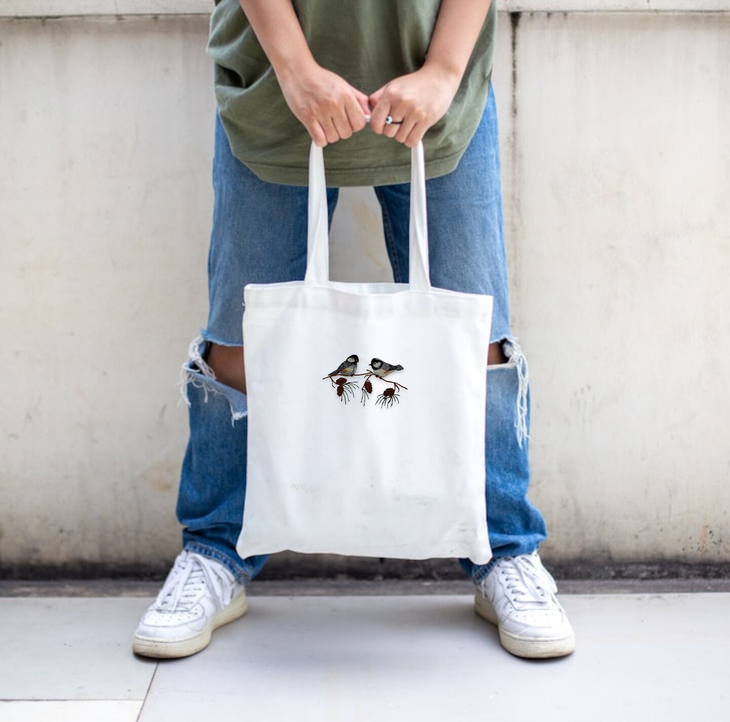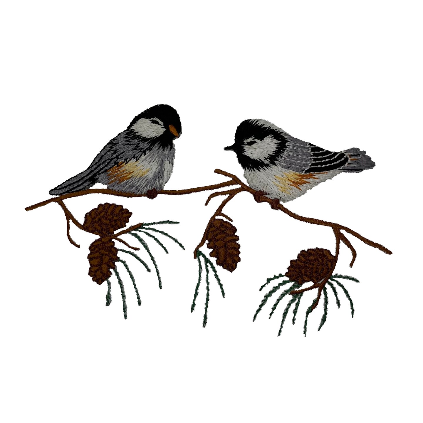 Two Chickadees on a Branch, Birds, Nature, Embroidered, Iron on Patch
