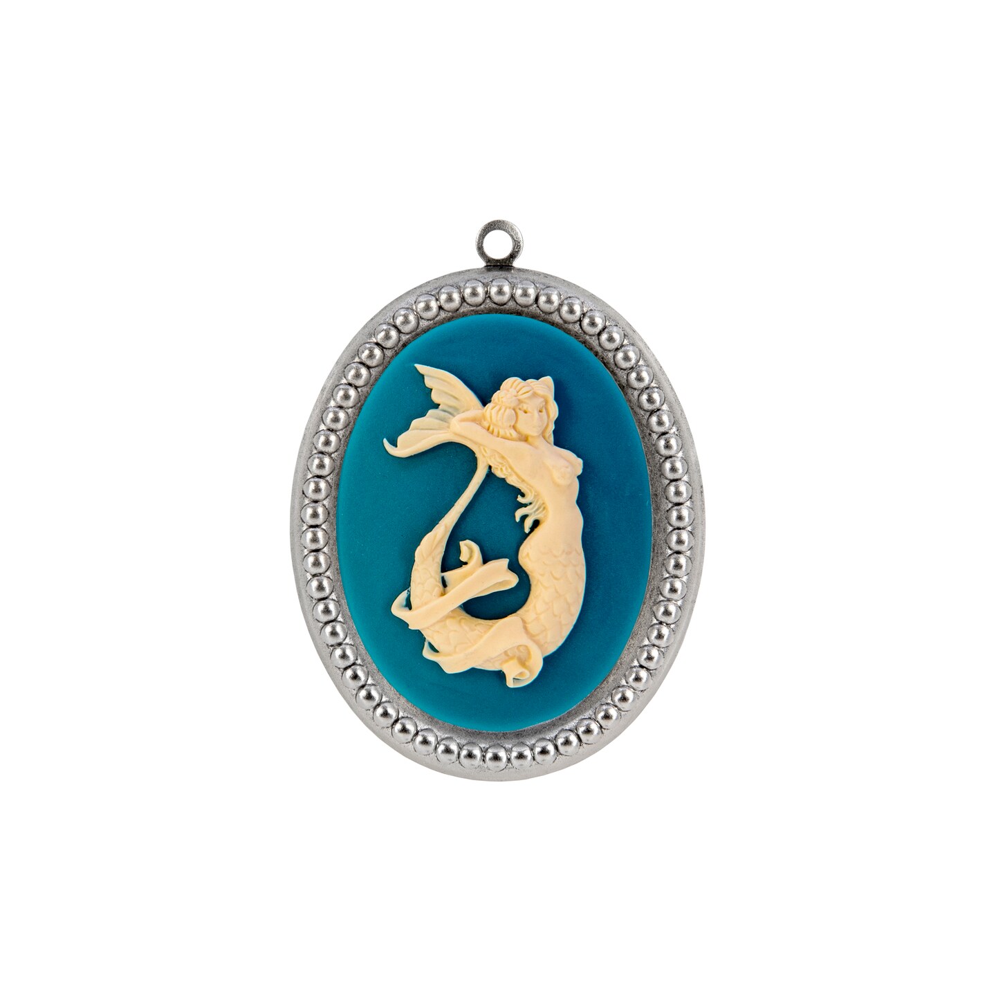 Two Dark Turquoise and Cream Risque Mermaid Cameos 40mm x 30mm Cameos - CAM362