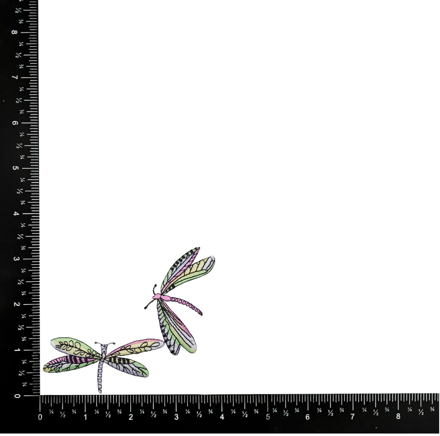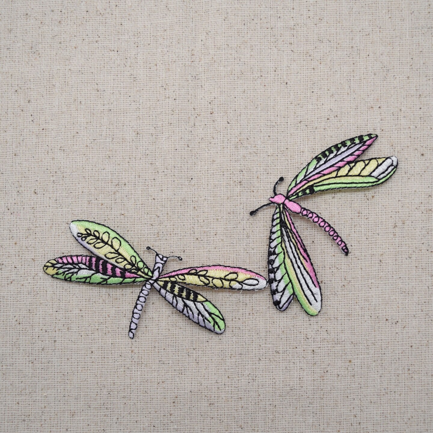 Two Dragonflies - Lime Green/Pink Embroidered Patch Embroidered, Iron on Patch