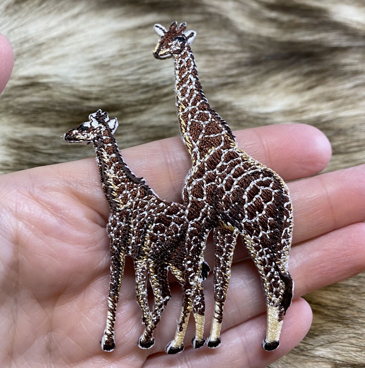 Two Giraffes, Zoo, Safari Animals, Realistic, Embroidered, Iron on Patch