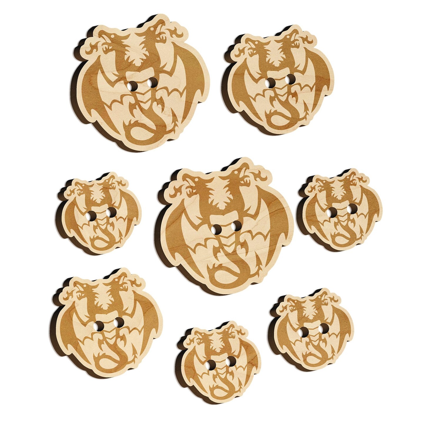 Two Headed Dragon Drake Wyvern Wood Buttons for Sewing Knitting Crochet DIY Craft