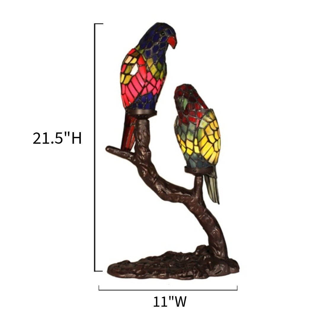 Two Parrots Genuine Stained Glass Shade & Lamp Base - Perfect for a Living Room, Bedroom, Office, & More