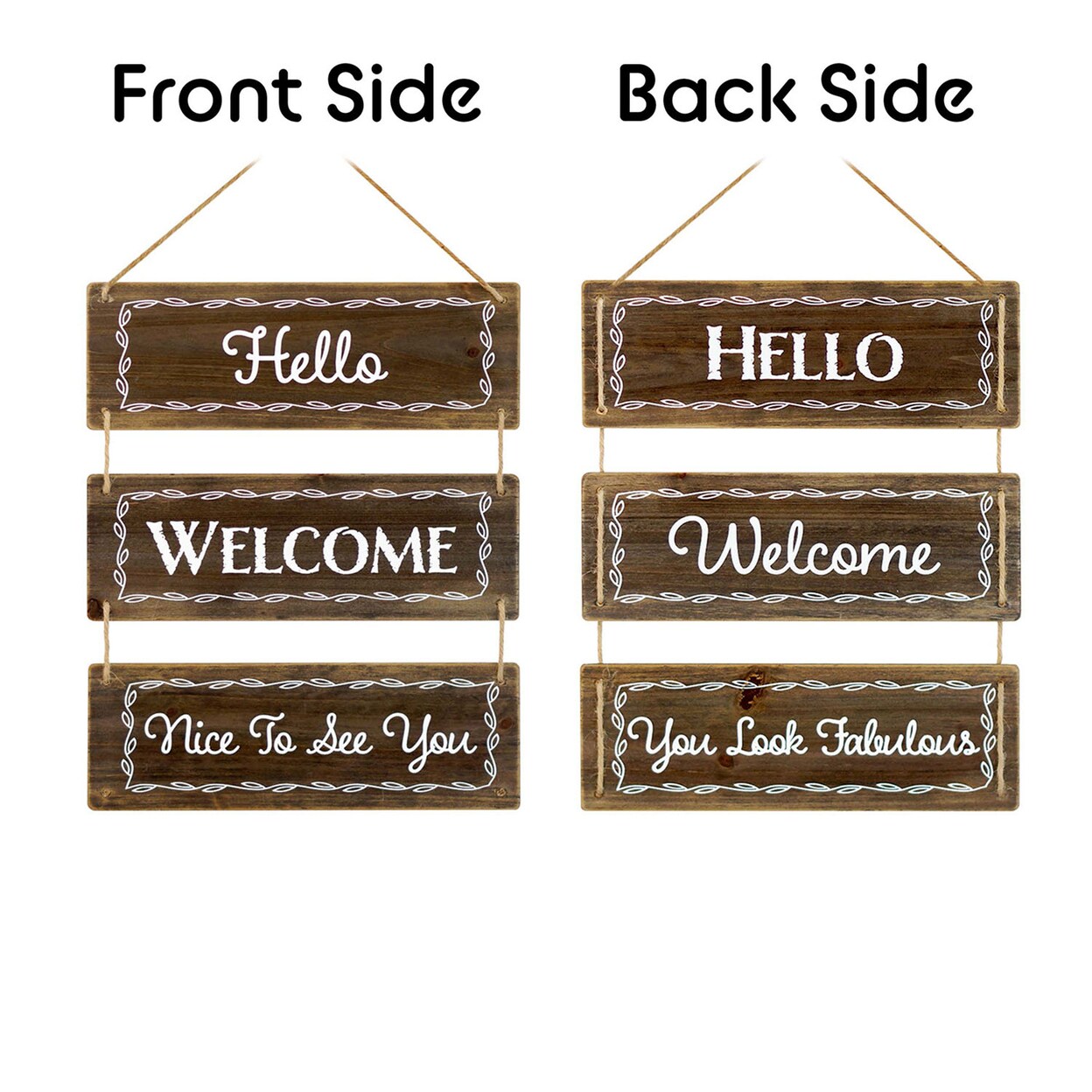 TX USA Corporation 3 Panels Brown Reversible Hanging Wood Wall Sign Decor