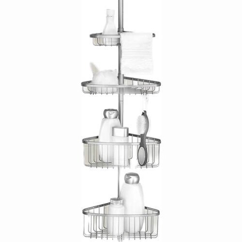 Tyler Adjustable Tension Pole Caddy 4-Tier Storage Silver 5-8 Feet High