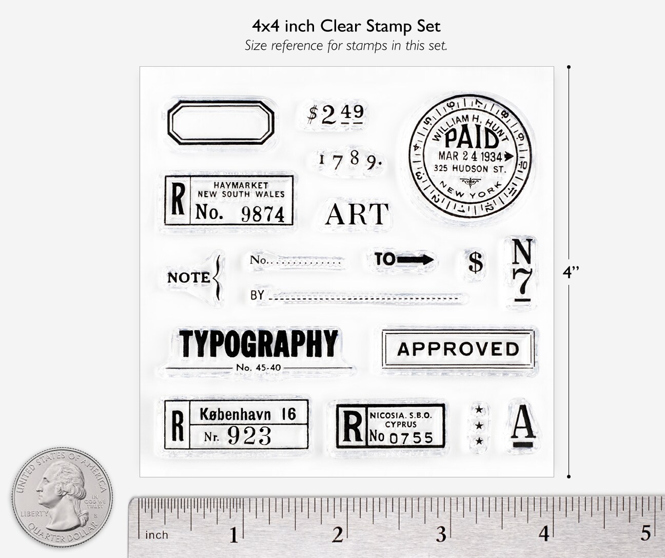 Typography Small Clear Stamp Set 4x4 inch by Wintertime Crafts