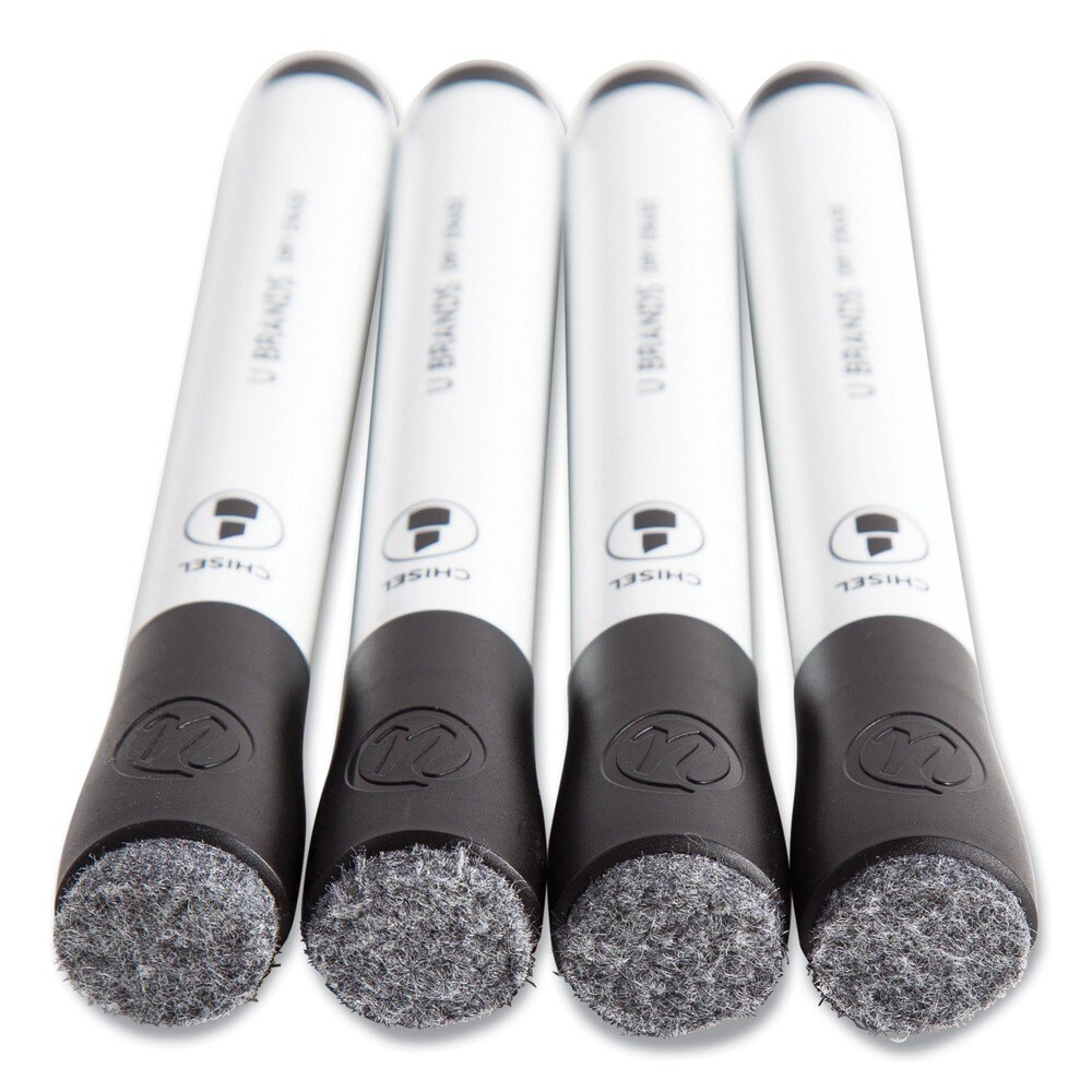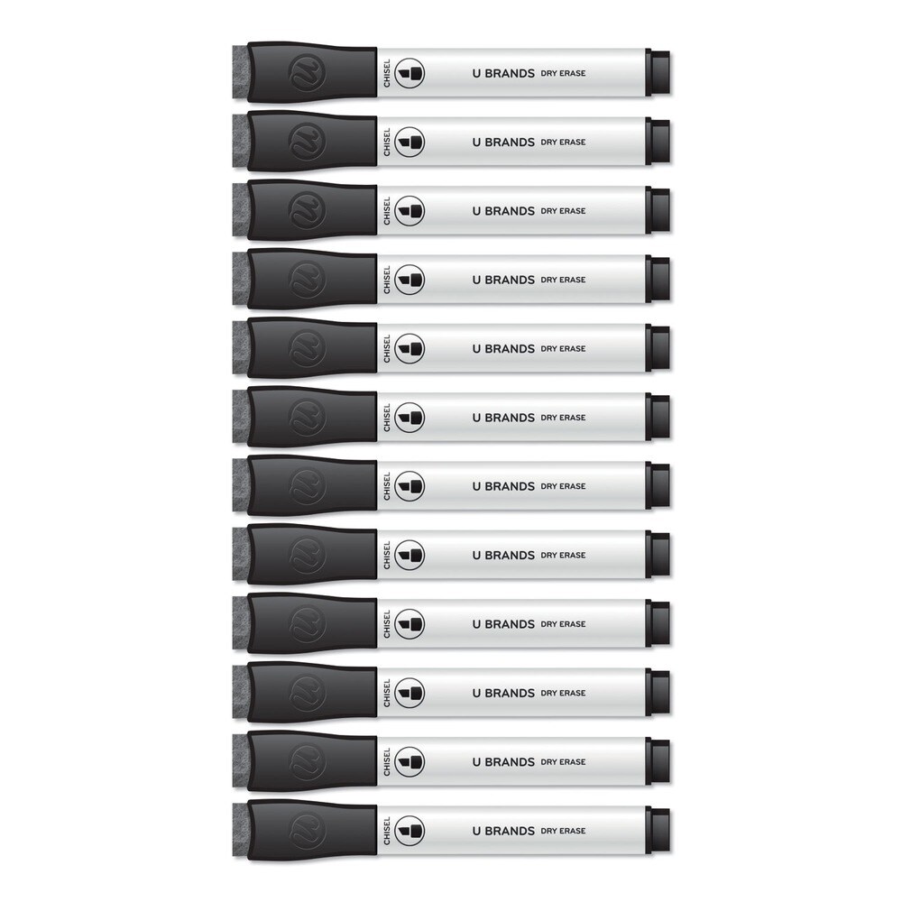 U Brands Low-Odor Dry-Erase Markers with Erasers - Black/Broad Chisel Tip (1-Dozen)