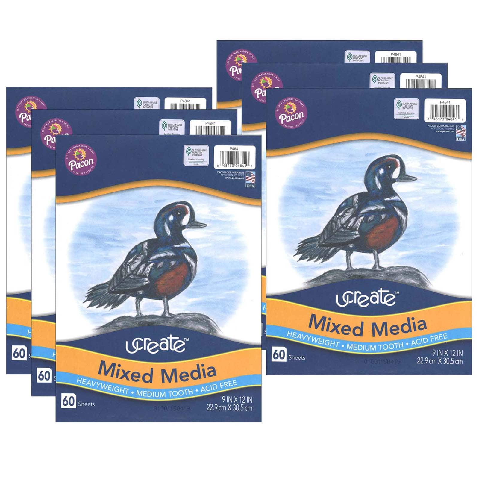 UCreate® Heavyweight 9" x 12" Mixed Media Art Paper, 6 Packs of 60