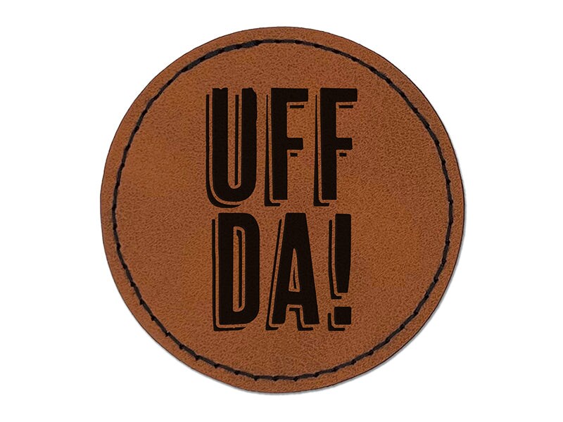 Uff Da Norwegian Ah Oh No Oops Drats Fun Text Round Iron-On Engraved Faux Leather Patch Applique - 2.5"