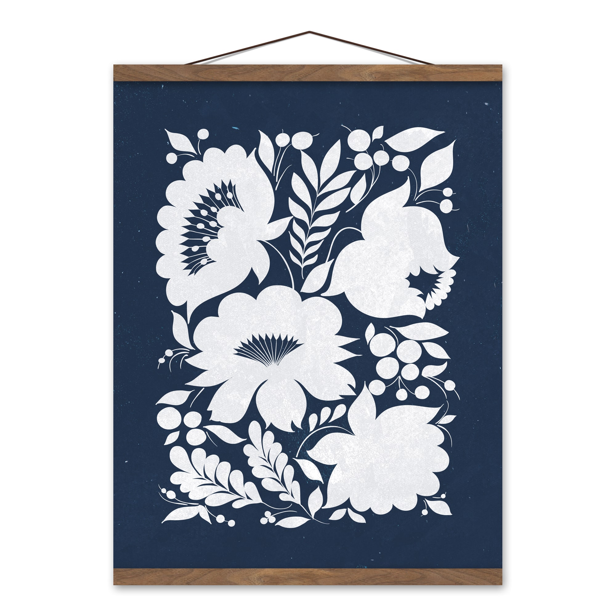 Ukrainian Floral Pattern 16" x 20" Teak Hanging Canvas