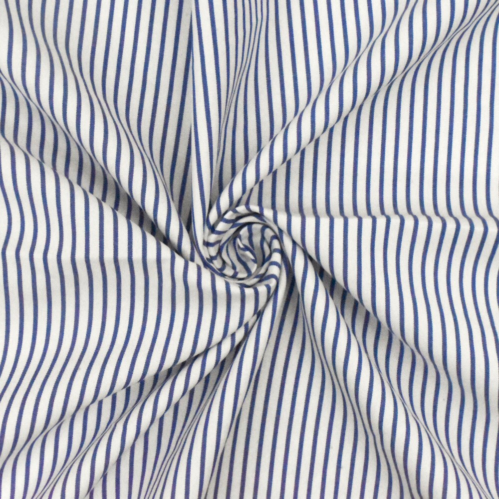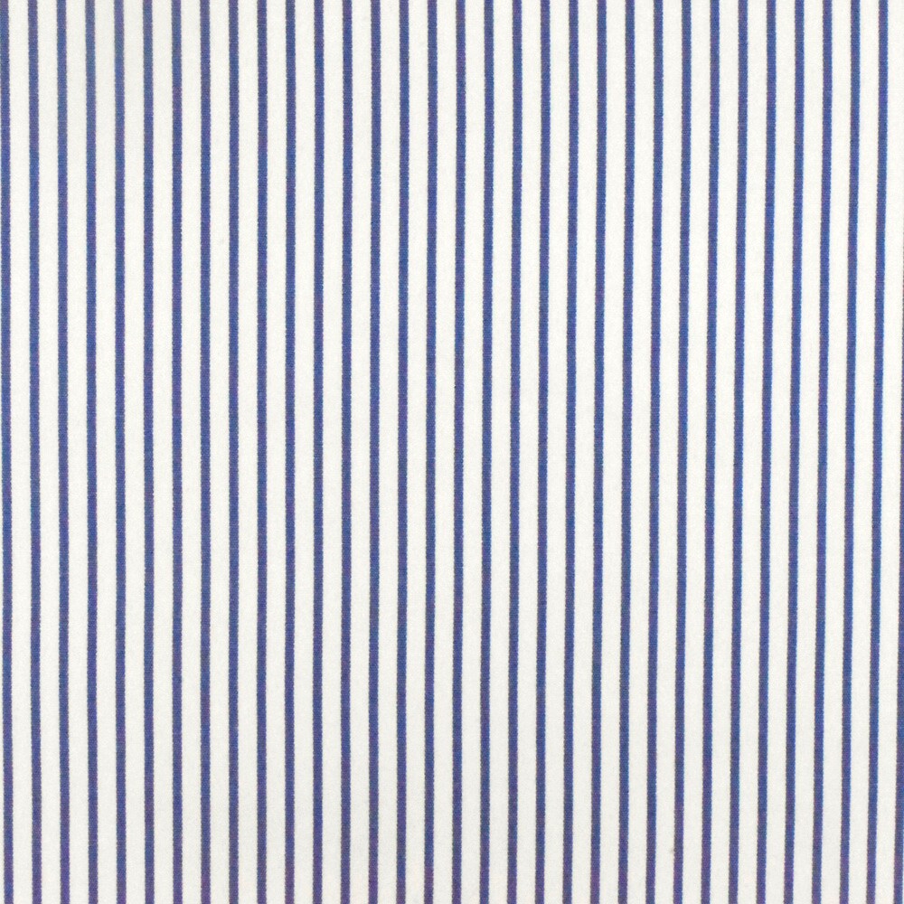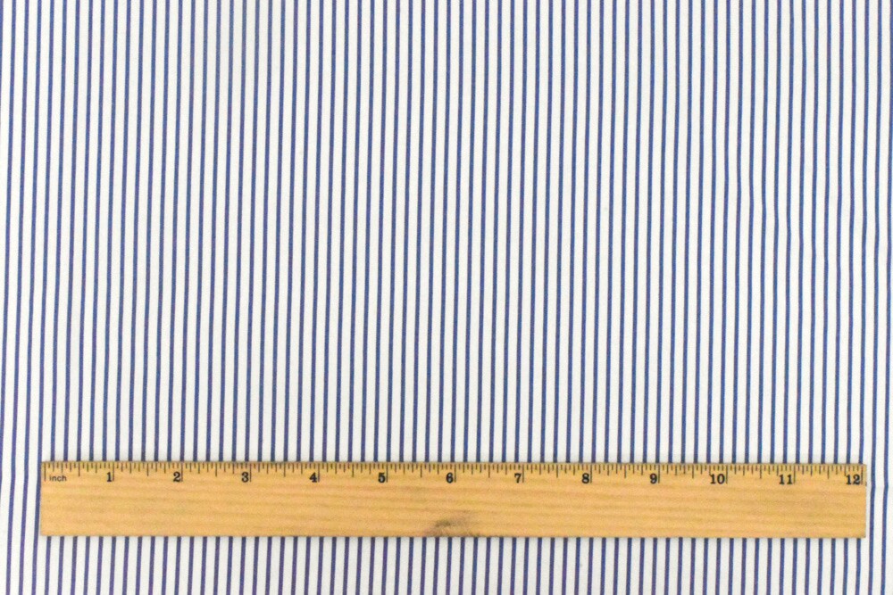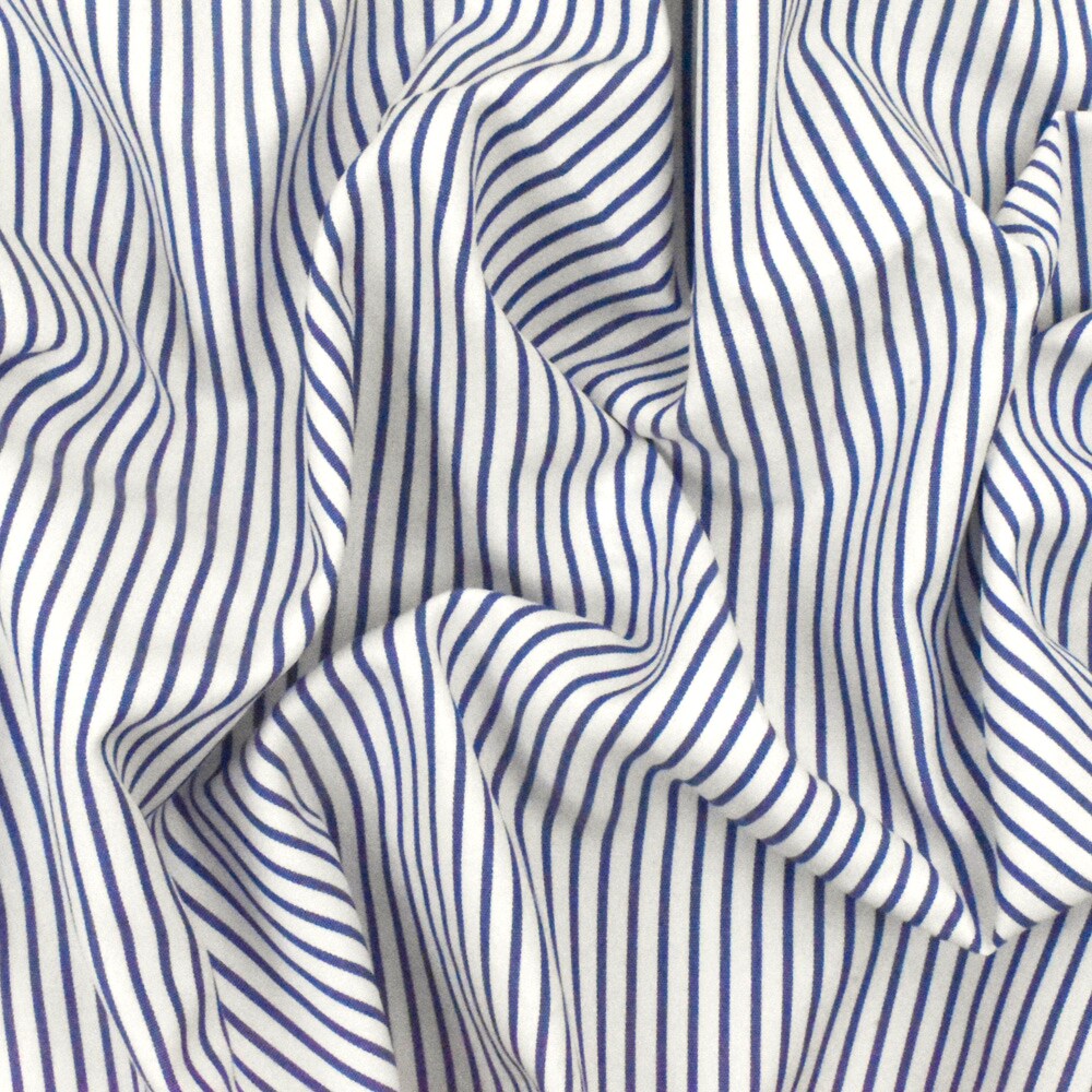 Ultramarine Blue-White Stripe Polyester Shirting Woven Fabric By the Yard