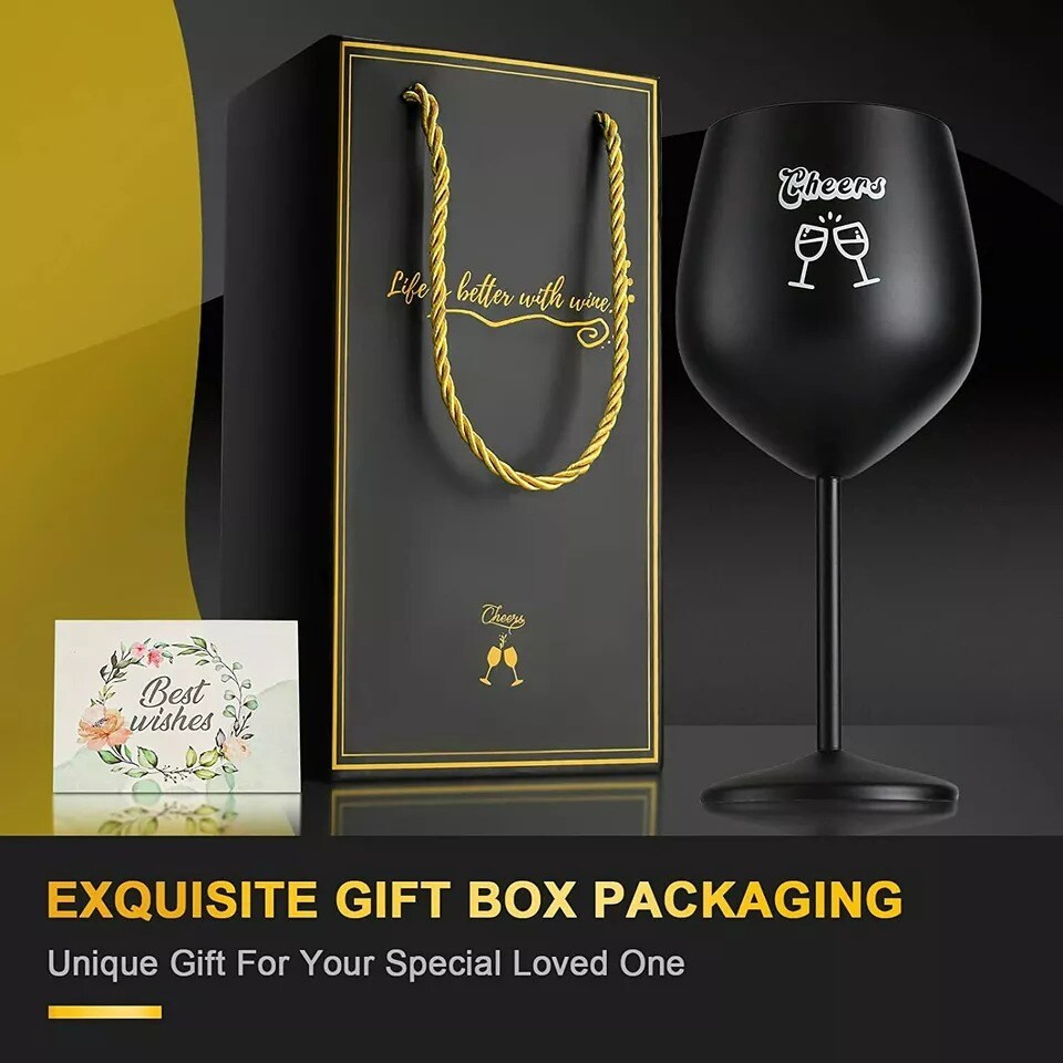 Unbreakable Stainless Steel Wine Glass, Shatterproof Red Wine Cup, Black Stemmed