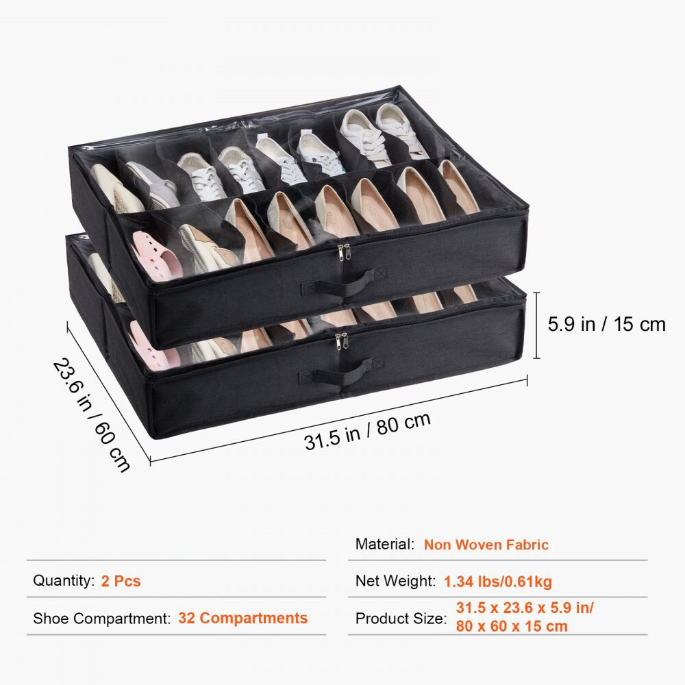 Under Bed Shoe Storage Organizer Set of 2 with 32 Compartments