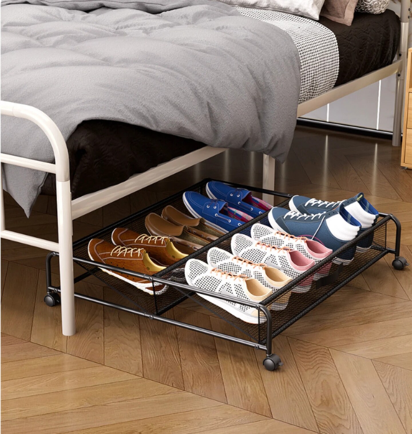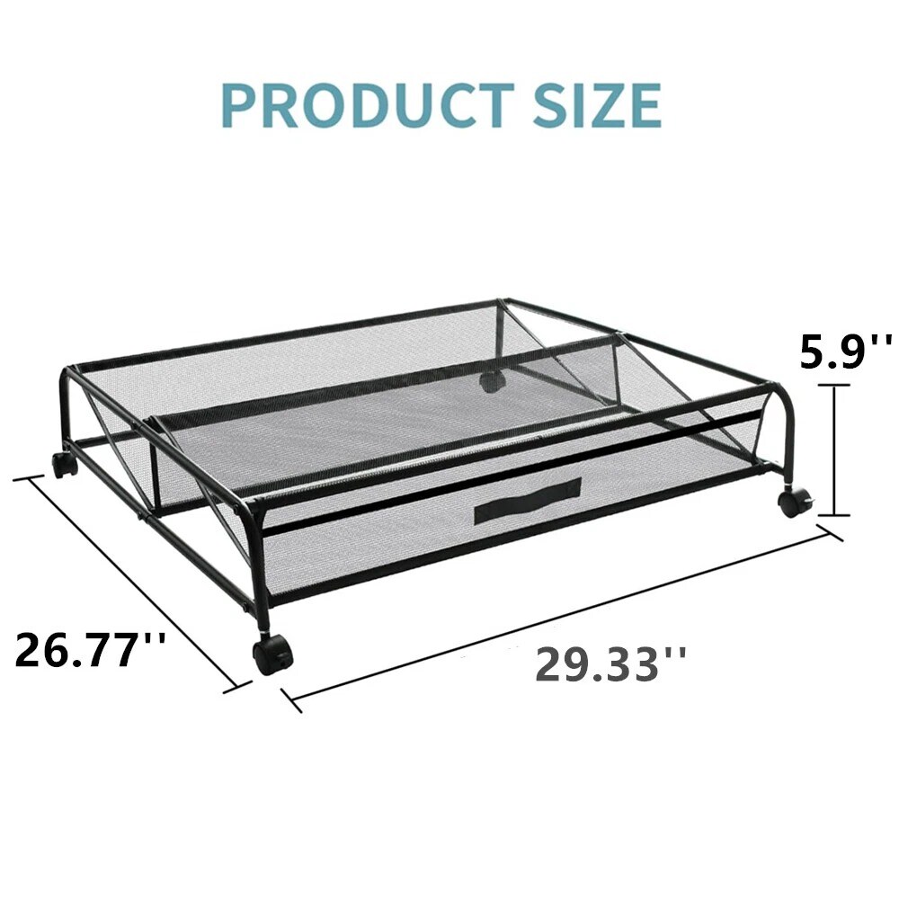 Under Bed Shoes Storage Organizer Metal Rolling Wheel Container Drawer Mesh Hole