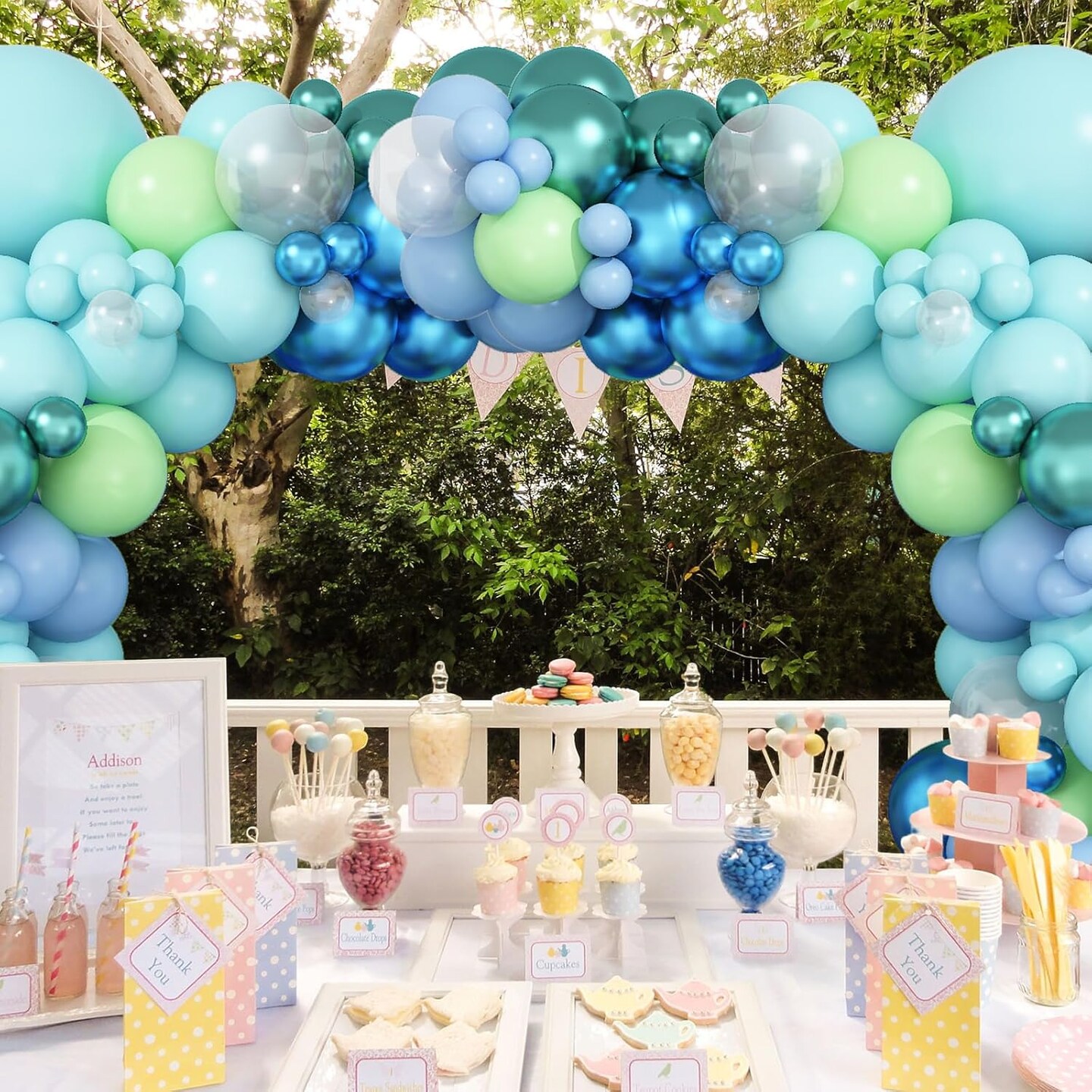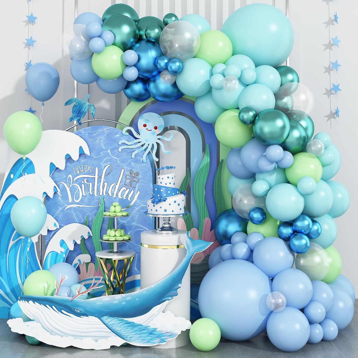 Under the Sea Balloon Arch – Pastel Blue, Teal & Lime Green Balloon Garland with Metallic Balloons for Ocean, Shark Theme Birthday Party & Baby Shower Decorations (Girls & Boys)