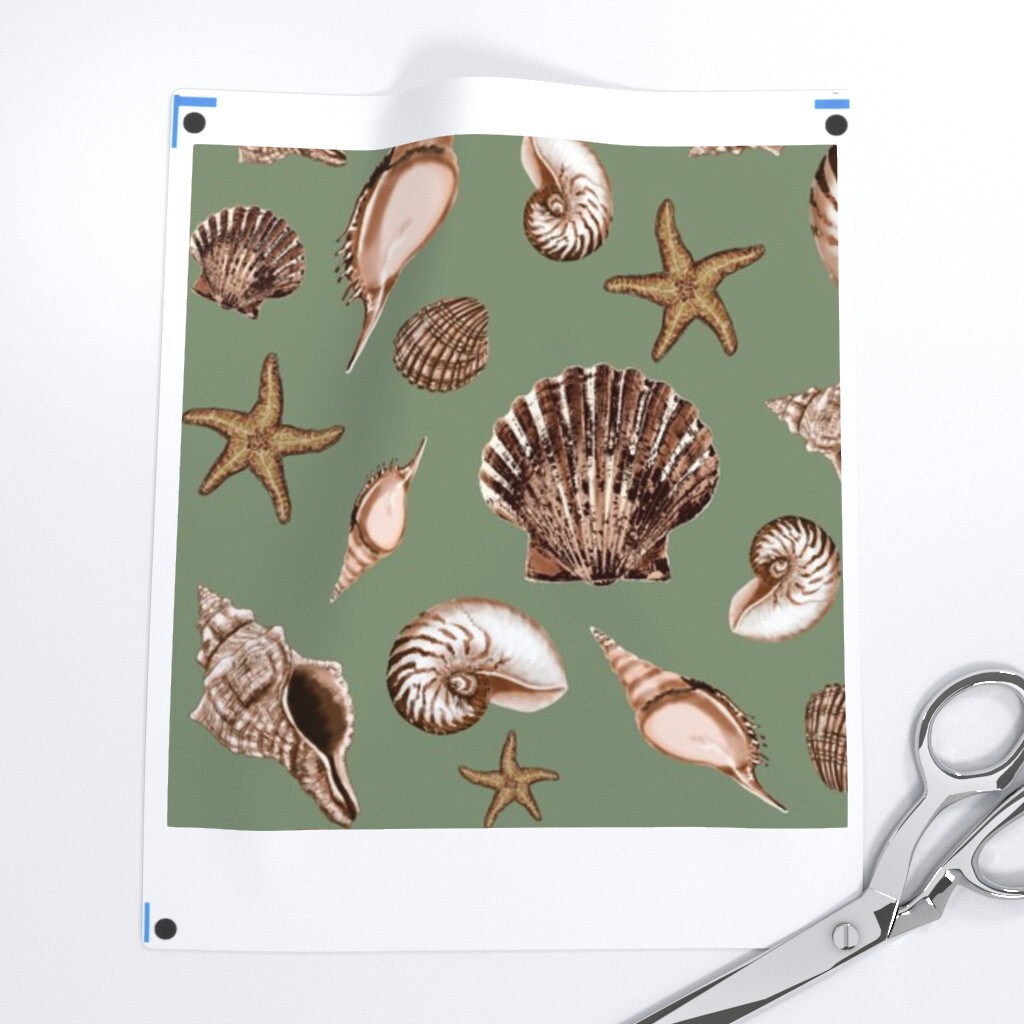 Under The Sea Beach Nautilus Nautical Shells Starfish Seashells Marine Life Ocean Custom Printed Fabric by Spoonflower Various Fabrics by the Yard or Fat Quarter