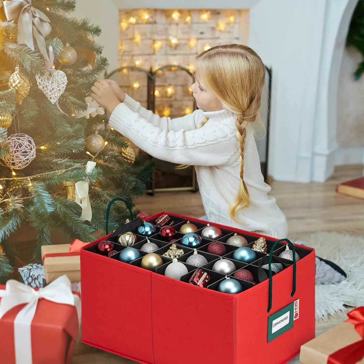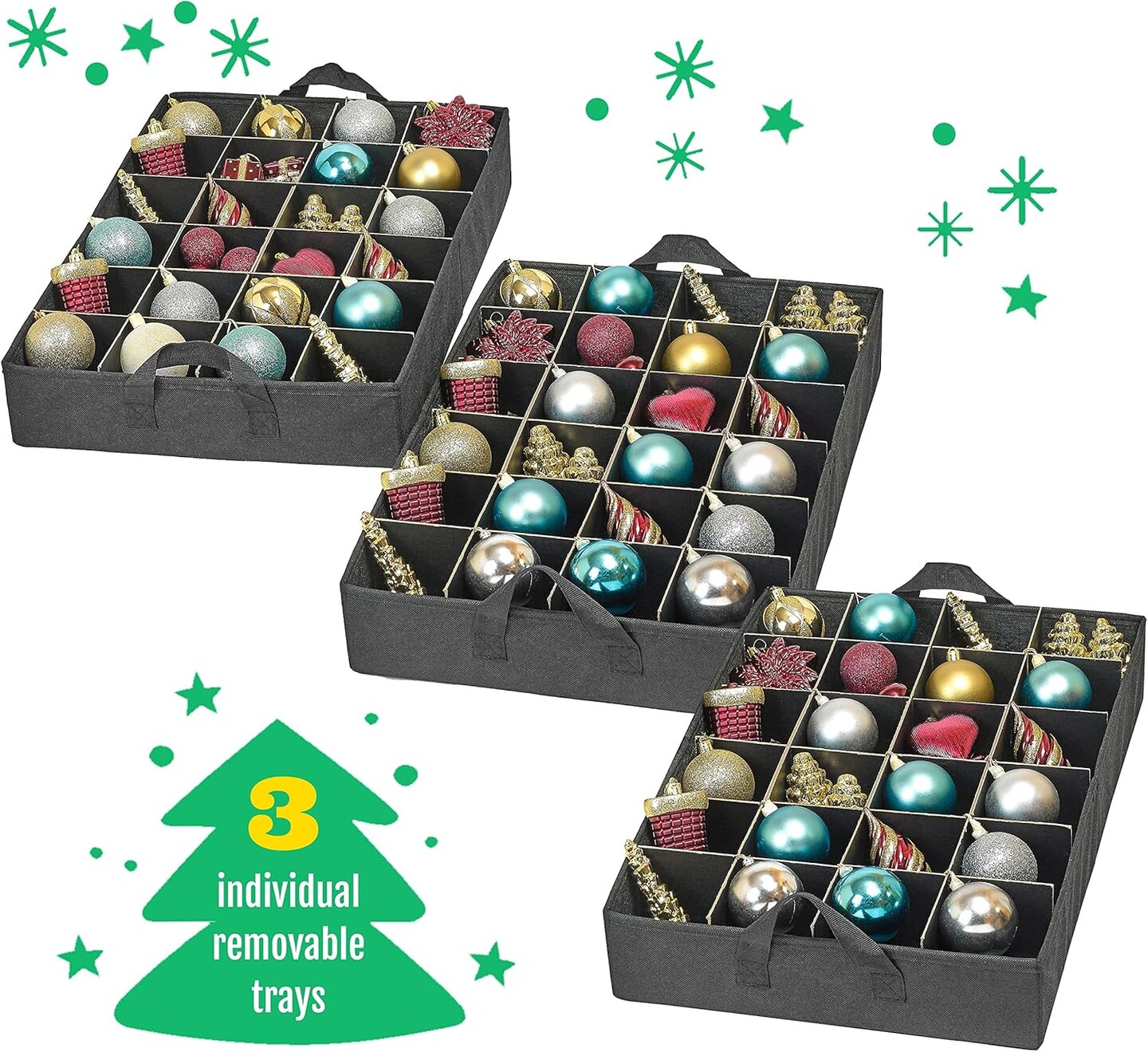 Underbed Christmas Ornament Storage Container Box with Dividers – Convenient Durable 3 Individual Removable Trays Fits Up to 72-3” Ornaments.