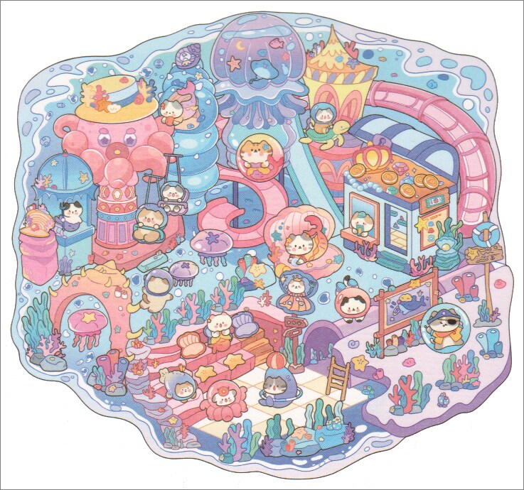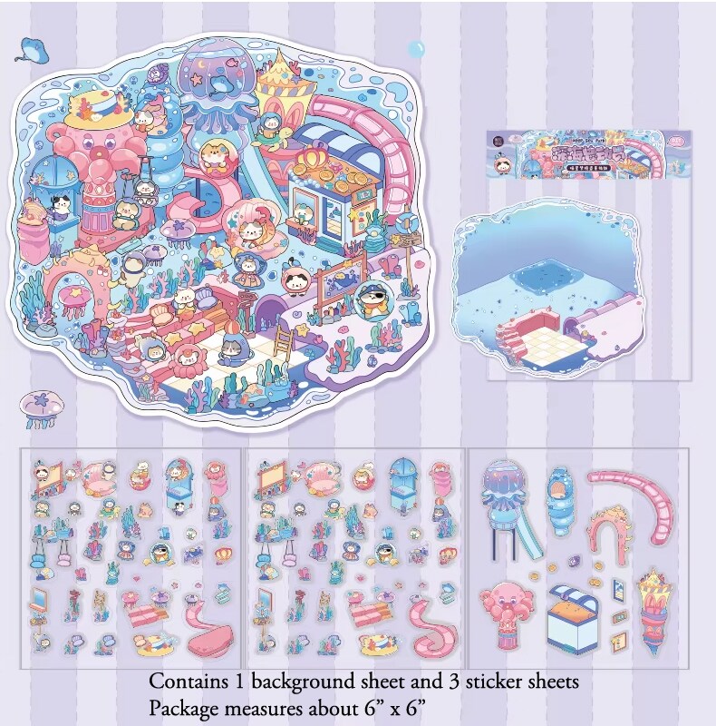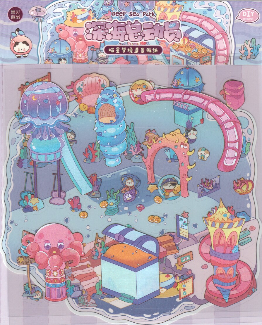 Underwater Cat World Sticker Scene, 3D Landscape Isometric Stickers, Adorabilities