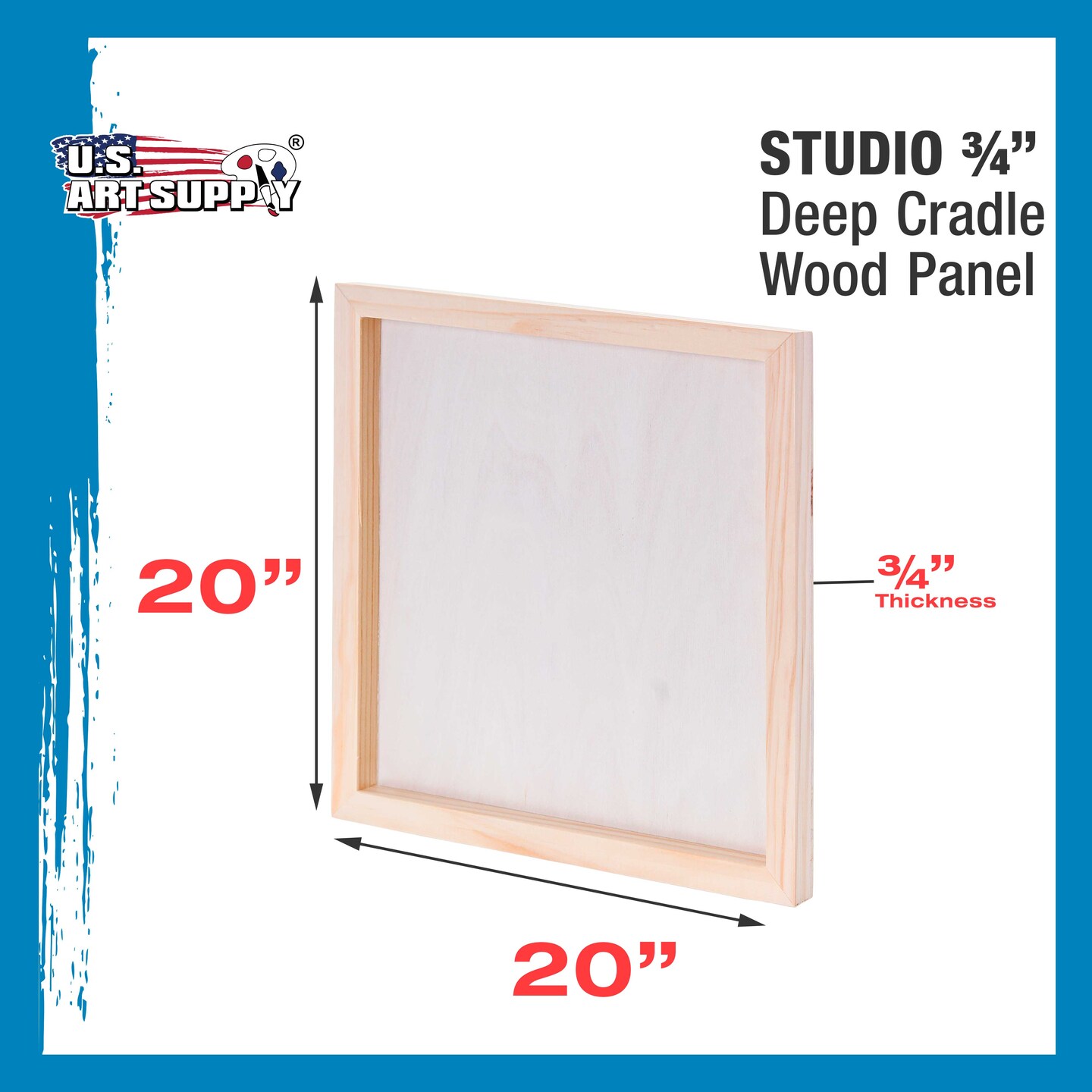 Unfinished Cradled Wood Panels for Painting, 2 Pack of 20x20 inch - Studio Birch Wooden Canvas Boards 3/4" Deep - Mixed-Media Craft, Acrylic, Oil, Encaustic, Paint Pouring Panel Board