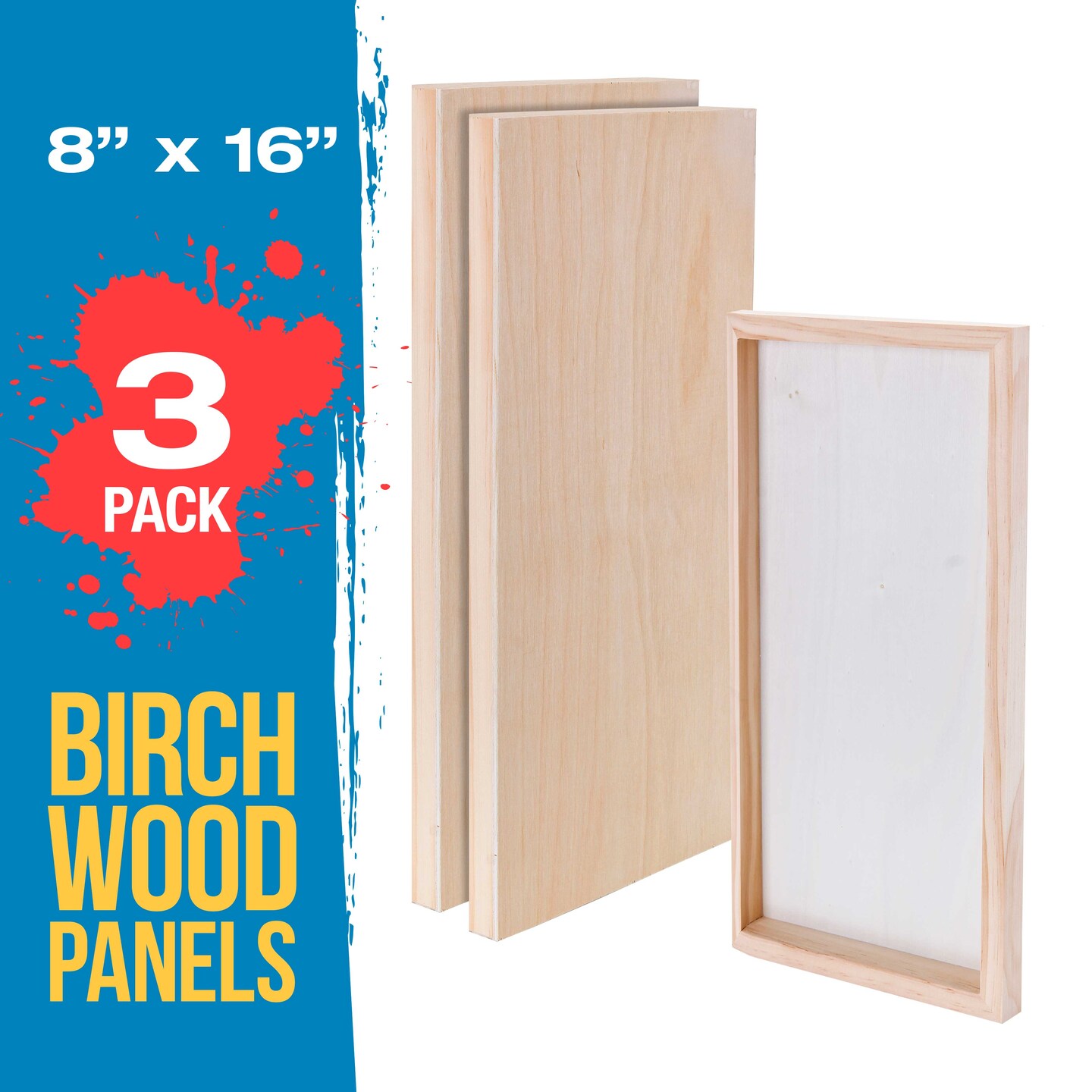 Unfinished Cradled Wood Panels for Painting, 3 Pack of 8x16 inch - Studio Birch Wooden Canvas Boards 3/4" Deep - Mixed-Media Craft, Acrylic, Oil, Encaustic, Paint Pouring Panel Board