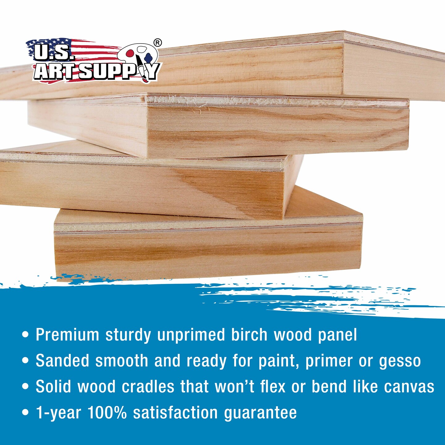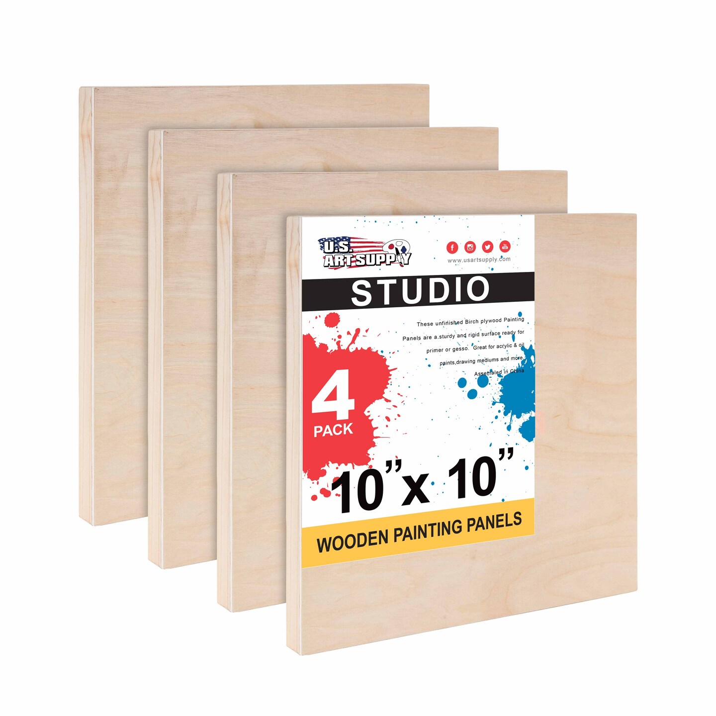 Unfinished Cradled Wood Panels for Painting, 4 Pack of 10x10 inch - Studio Birch Wooden Canvas Boards 3/4" Deep - Mixed-Media Craft, Acrylic, Oil, Encaustic, Paint Pouring Panel Board