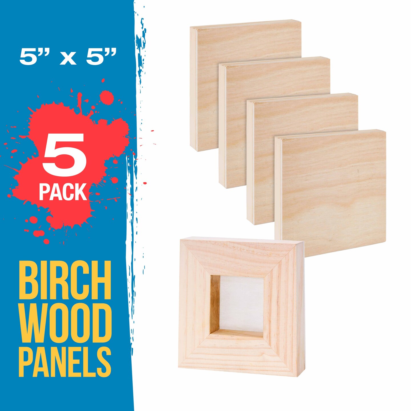 Unfinished Cradled Wood Panels for Painting, 5 Pack of 5x5 inch - Studio Birch Wooden Canvas Boards 3/4" Deep - Mixed-Media Craft, Acrylic, Oil, Encaustic, Paint Pouring Panel Board