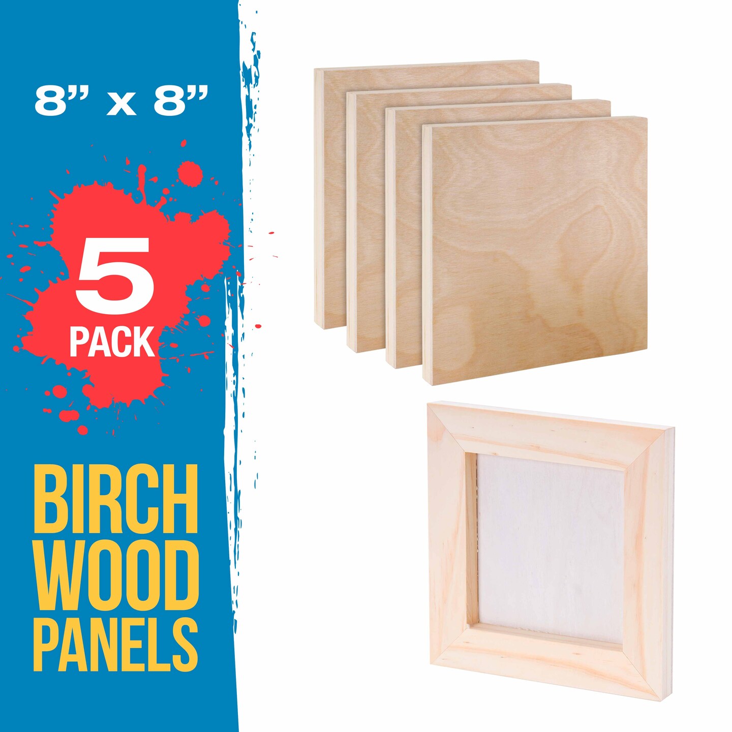 Unfinished Cradled Wood Panels for Painting, 5 Pack of 8x8 inch - Studio Birch Wooden Canvas Boards 3/4" Deep - Mixed-Media Craft, Acrylic, Oil, Encaustic, Paint Pouring Panel Board