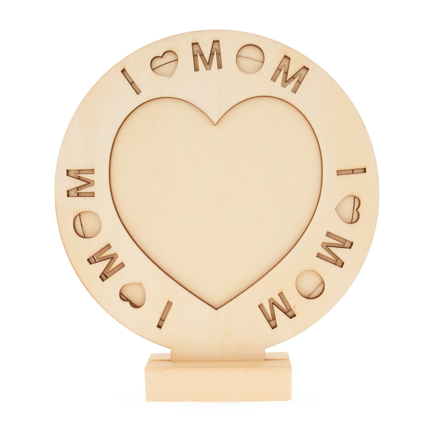 Unfinished Standing Wooden "I Love Mom" Picture Frame DIY Craft 6.7 Inches