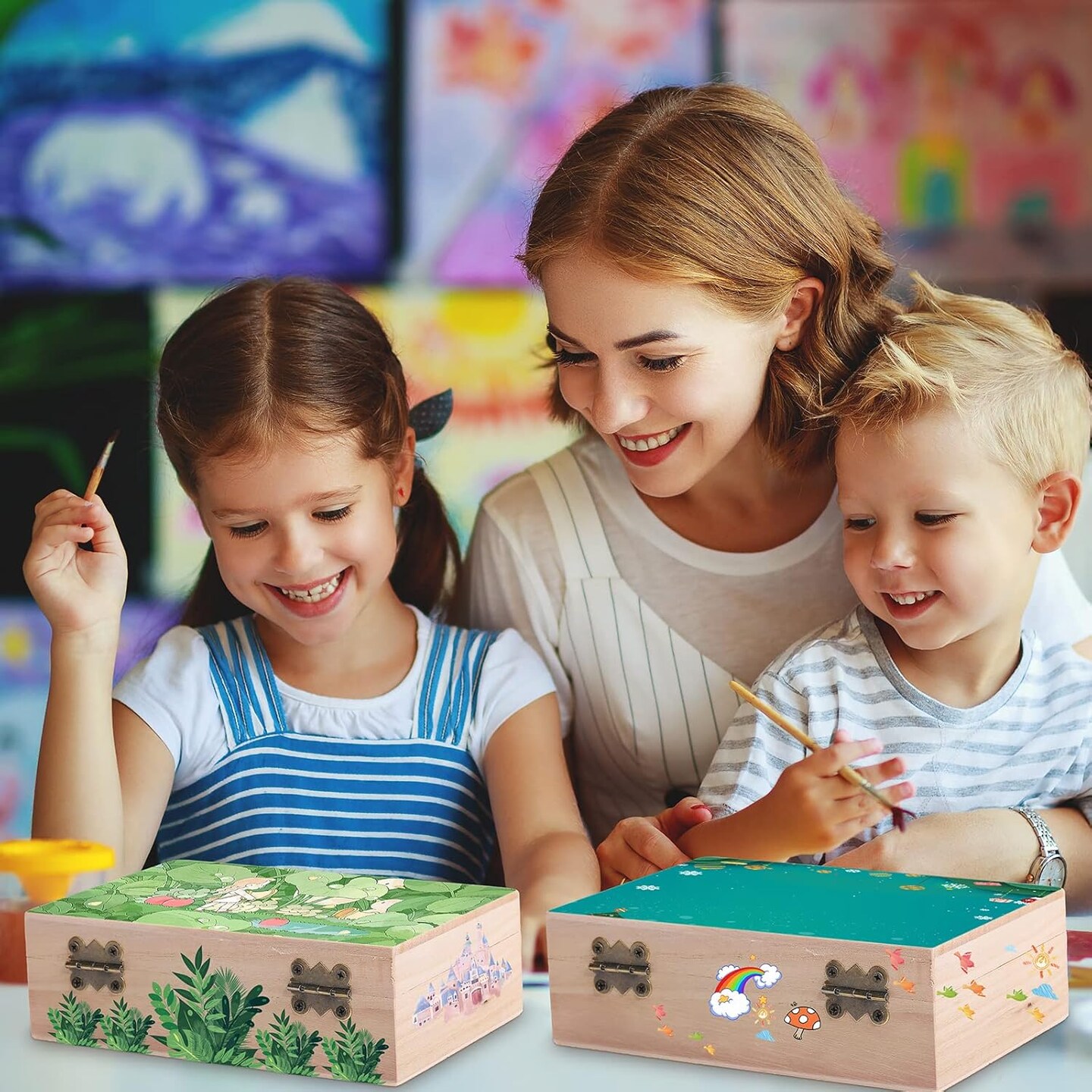 Unfinished Wooden Box with Hinged Lid Wood Small Craft Unpainted Jewelry Keepsake Rectangle Treasure Gift Storage Box