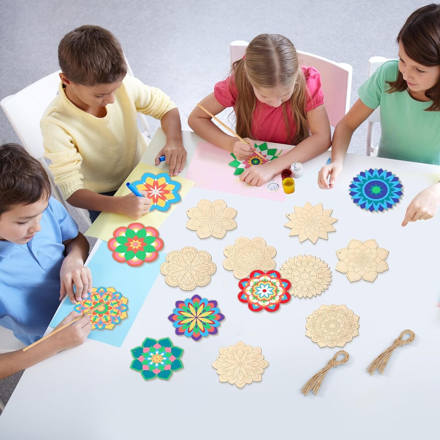 Unfinished Wooden Mandala Painting Crafts – 40 PCS Wood Mandala Slices for DIY Painting, Relaxing Art Projects, Diwali, Wedding & Home Decor (4 Inch, Elegant)