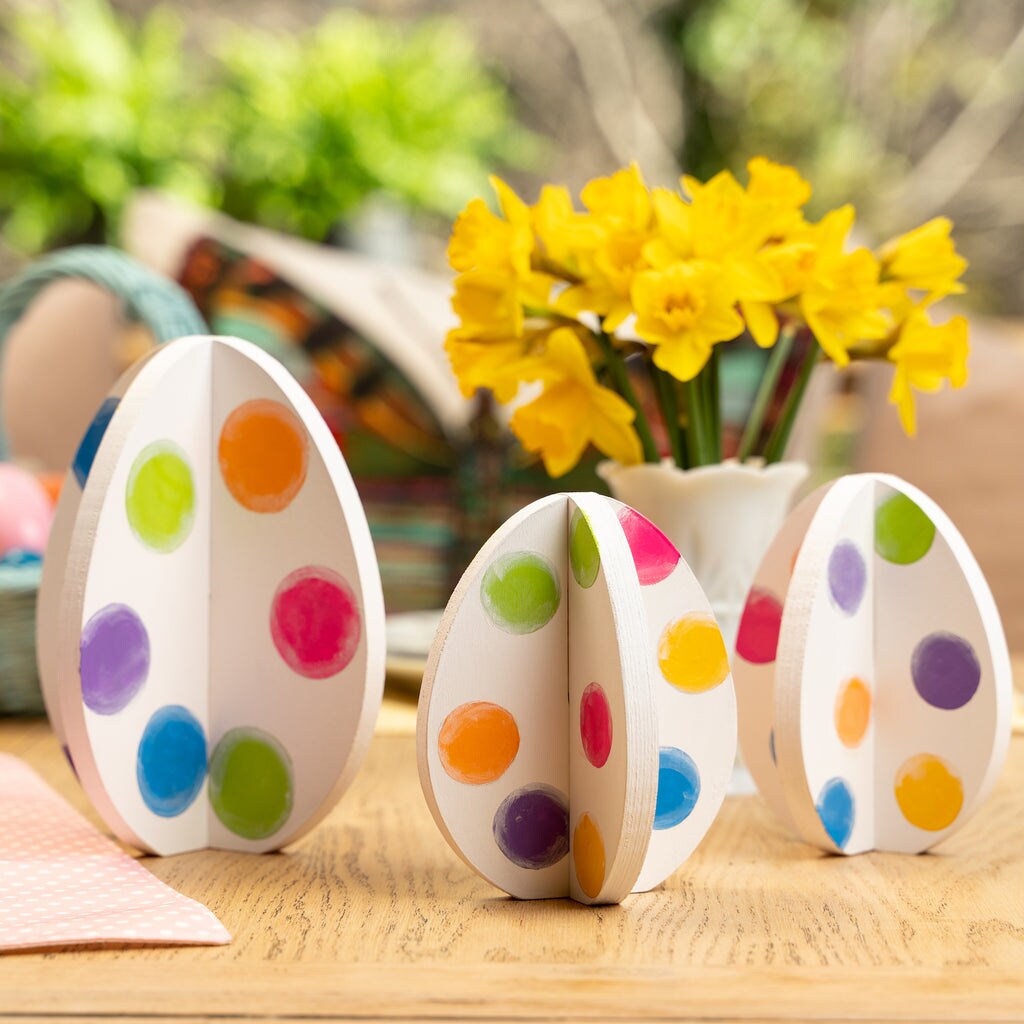 Unfinished Wooden Slotted Standing Egg Set of 3