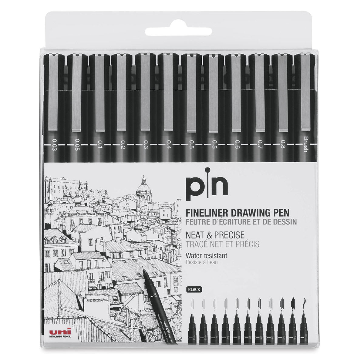 Uni Pin Fine Liner Pen - Set of 12, Black