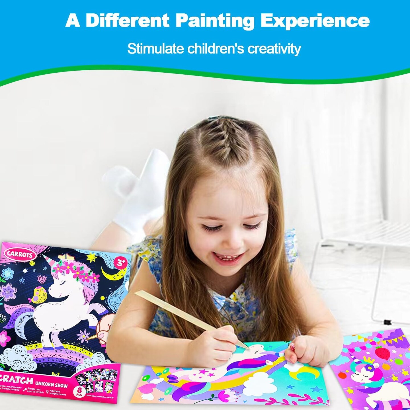 Unicorn Rainbow Scratch Art Kit for Kids – Magical Black Scratch Paper Set with Wooden Stylus, Fun DIY Crafts for Girls & Boys Ages 3–8 (Unicorn)