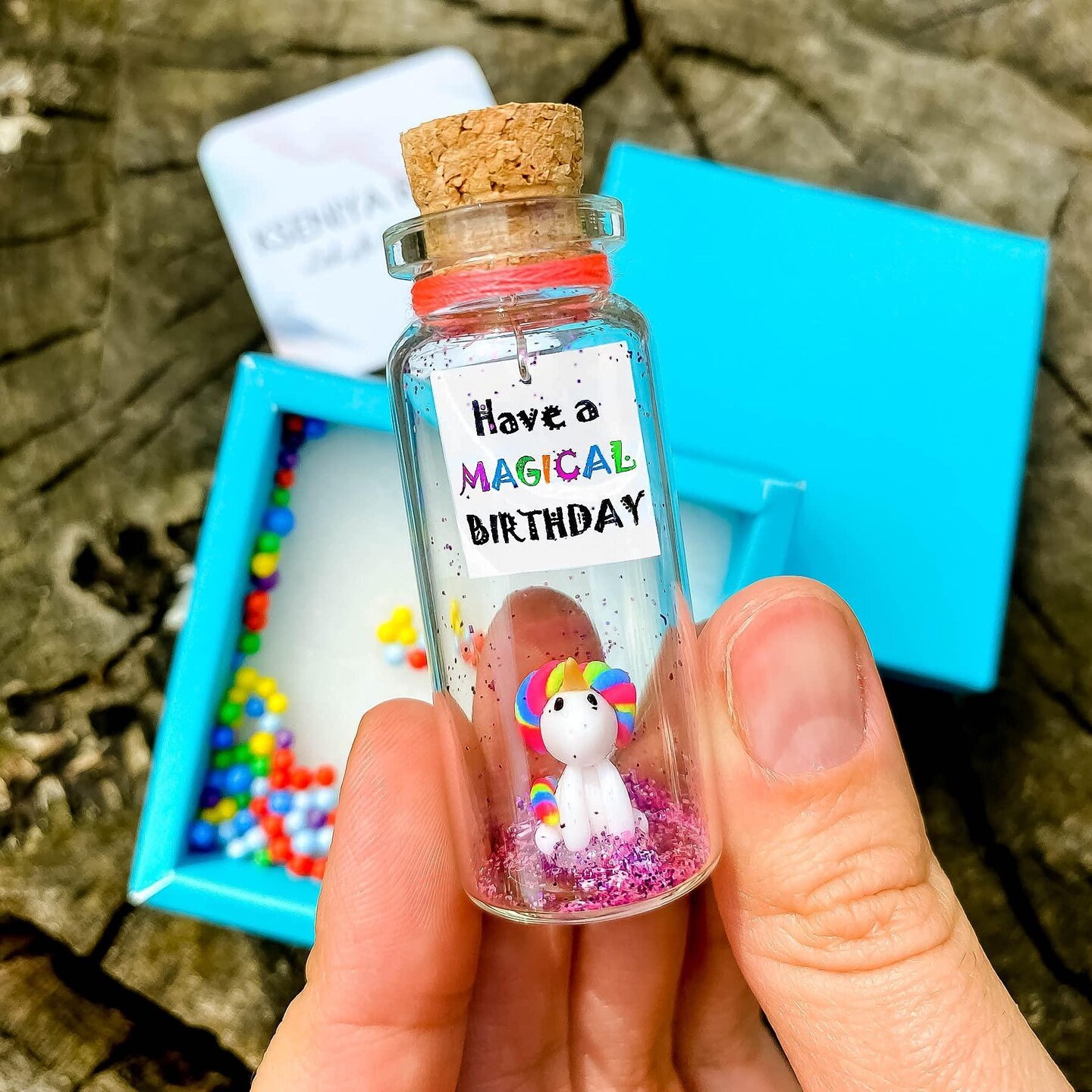 Unique Birthday Gifts for Him and Her Cute and Funny Bday Presents for Men and Women Gift for Mom Dad Family (Rainbow Unicorn Have a Magical Birthday Message Bottle in Teal Gift Box)