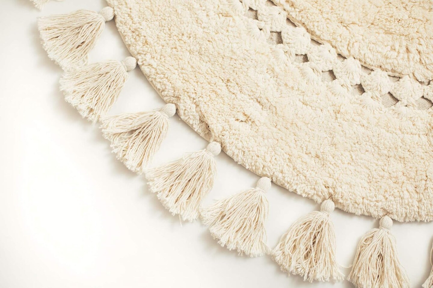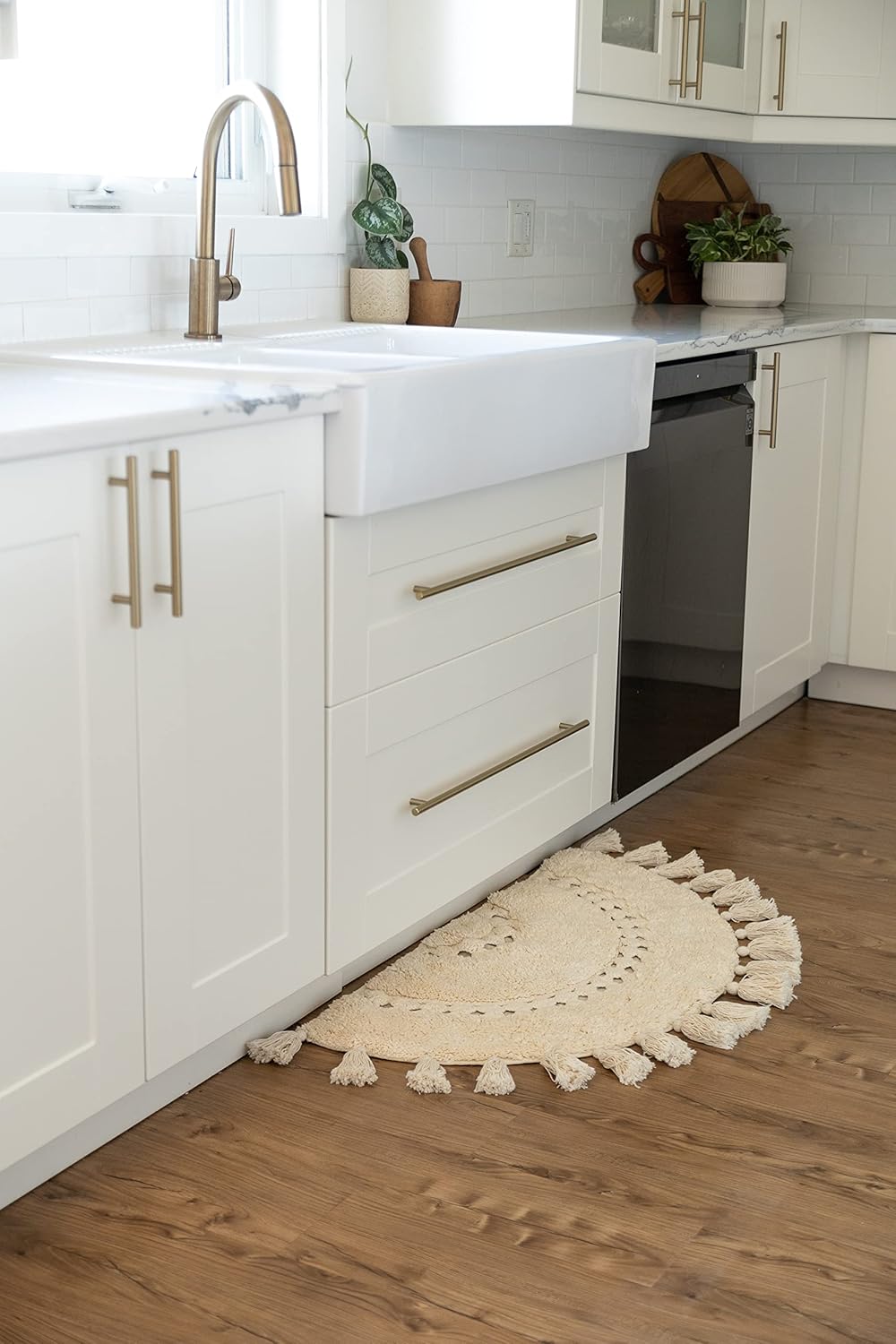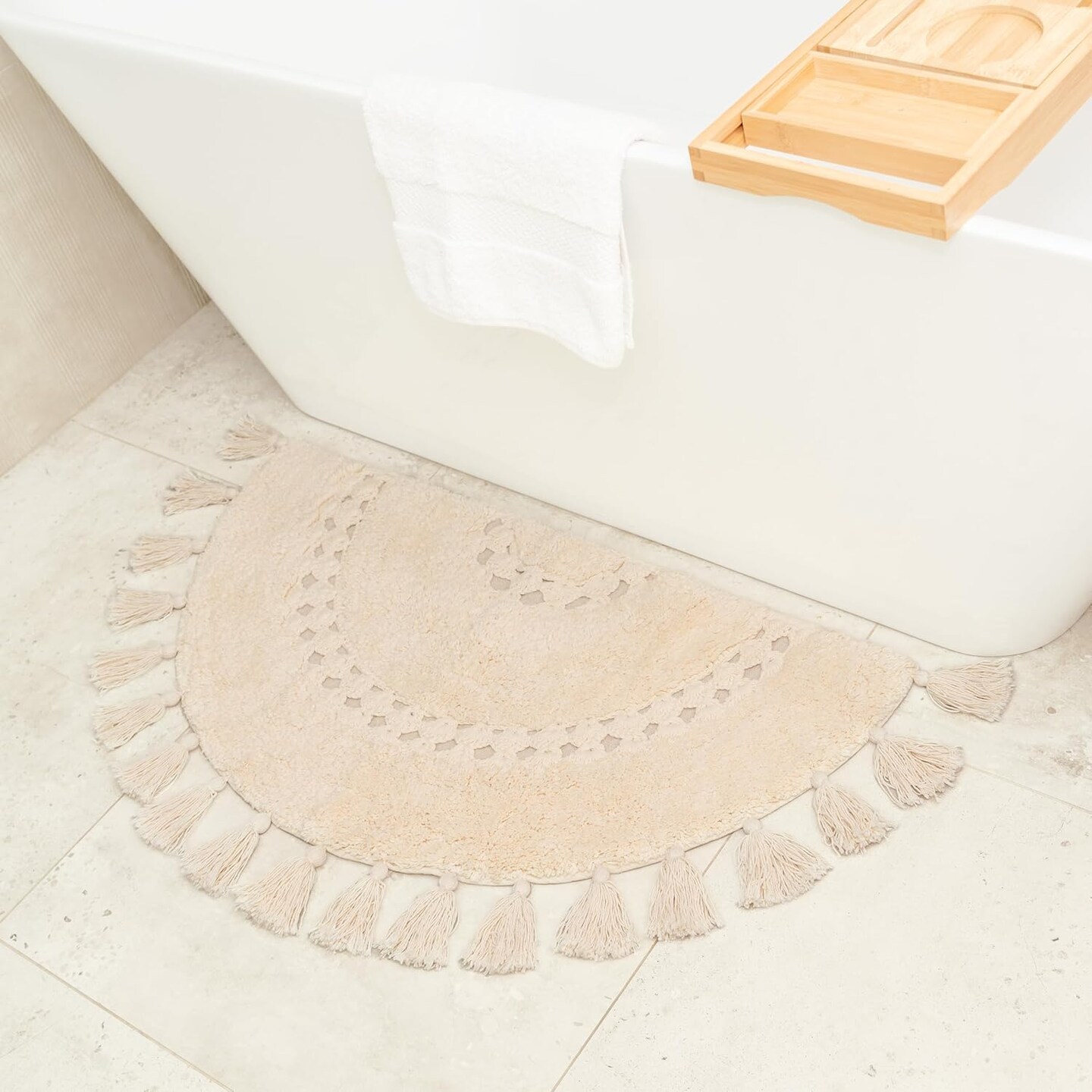 Unique Boho Rug - Half Circle Mat with Crochet Insert Detail & Tassels (1'10" x 3'6" (Semicircular))